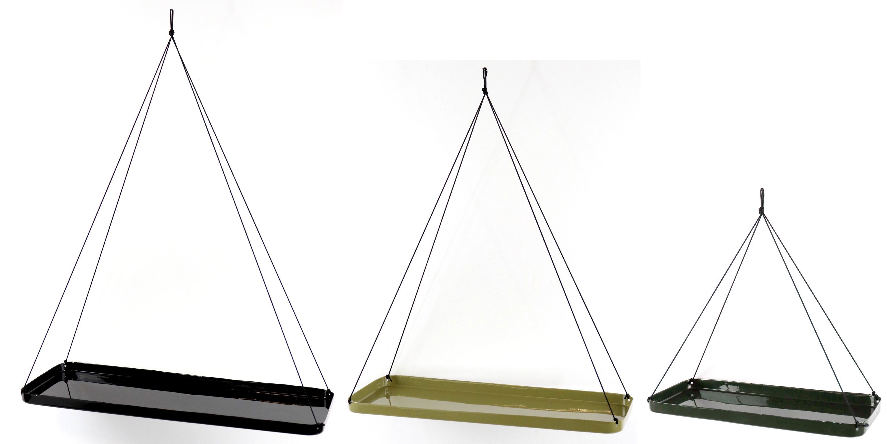 Das Set besteht aus drei Hängetabletts in den trendigen Farben Grün und Schwarz, deren Größen von 51,5 cm, 41 cm bis hin zu 32 cm reichen. Gefertigt aus robustem Metall, gewährleisten die Tabletts eine langlebige Nutzung und Stabilität, um sowohl leichte als auch schwere Objekte sicher zu halten. Diese Vielseitigkeit macht die Hängetabletts „Deluxe“ zur idealen Wahl für die Präsentation einer Vielzahl von Produkten – sei es Dekoration, Accessoires oder weitere Lifestyle-Produkte.