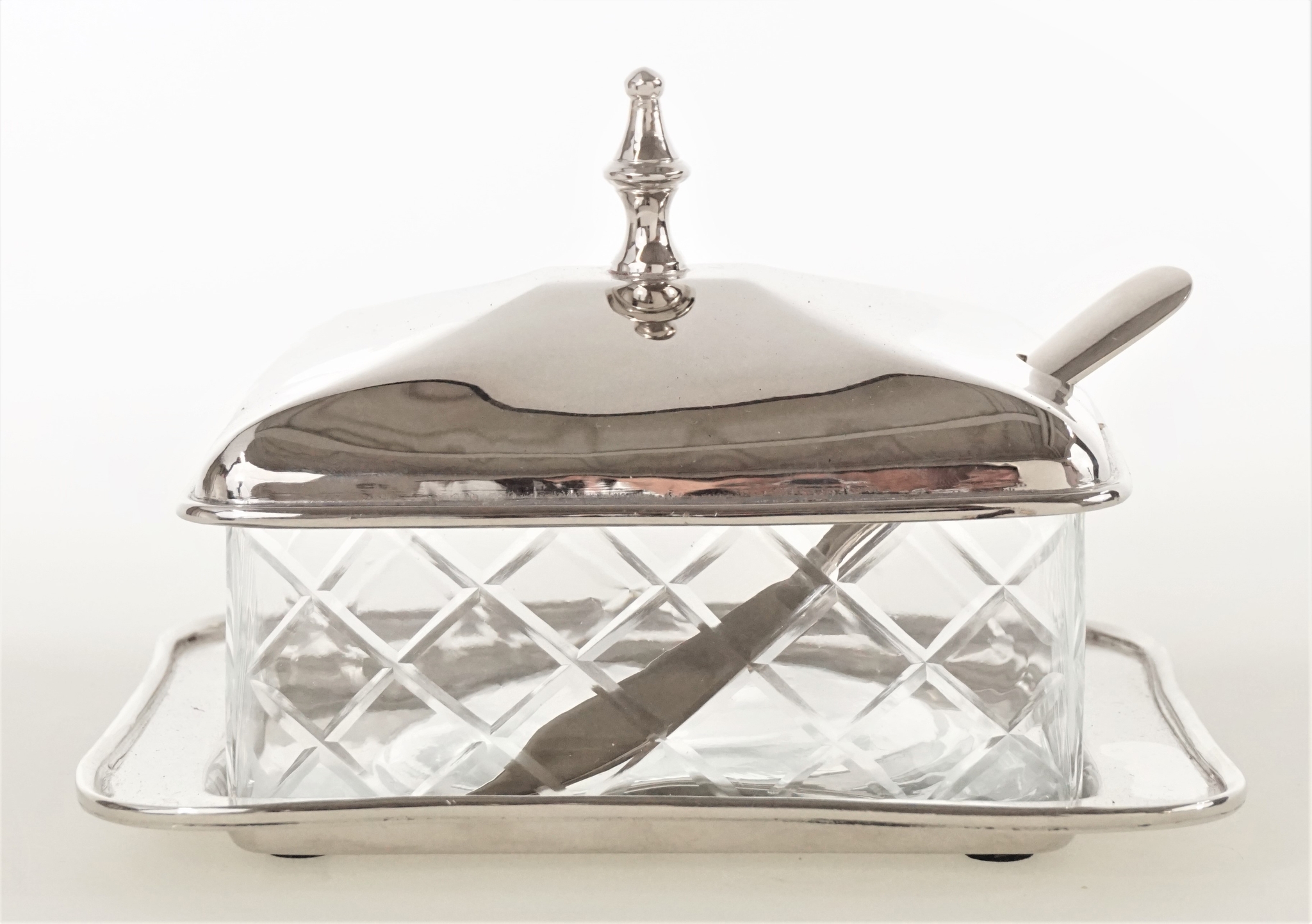 - **Hochwertiges Material:** Gefertigt aus robustem Glas und einem stilvollen Buttermesser aus Silber.