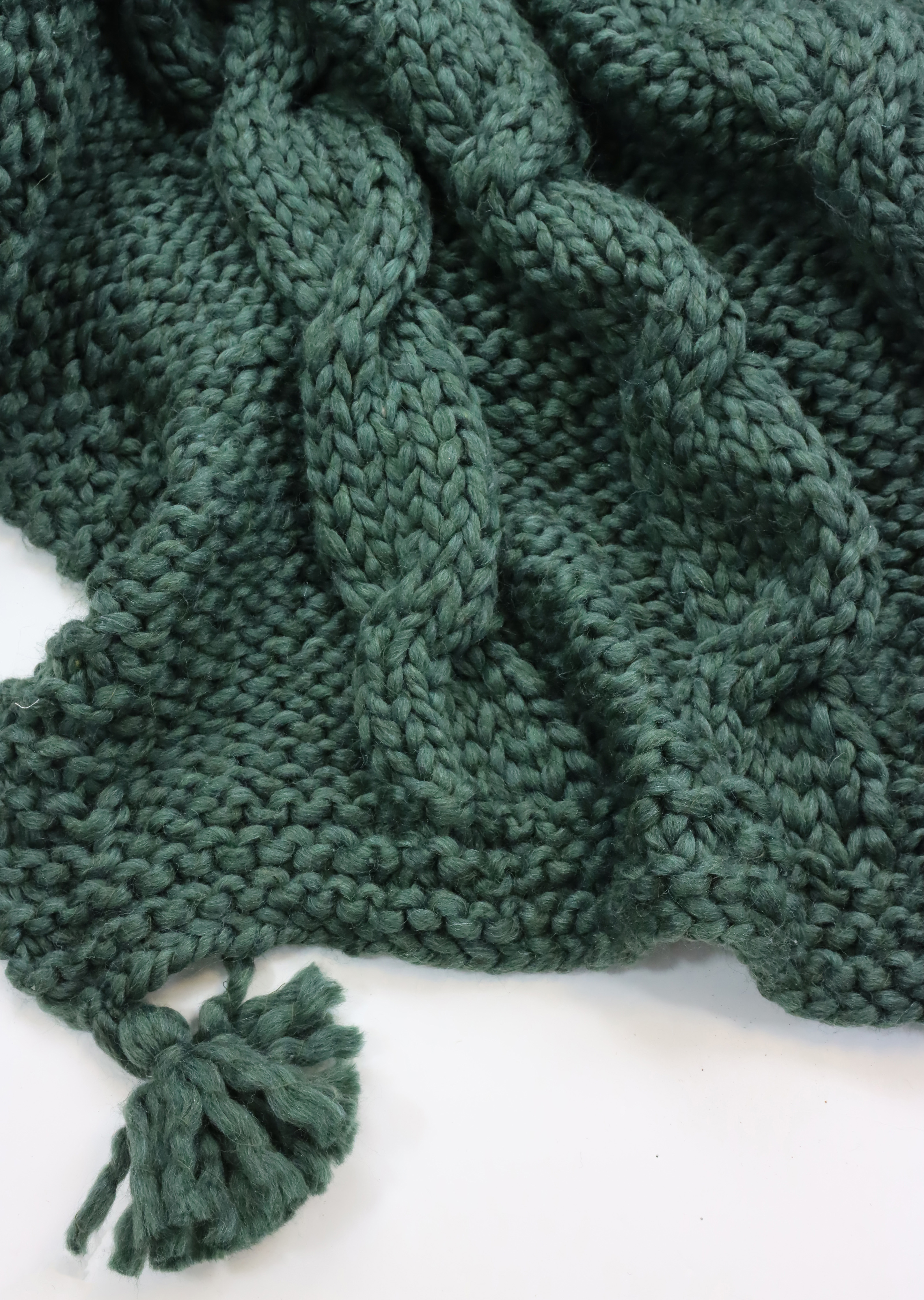 Die Strickdecke "Gstaad" eignet sich hervorragend als dekoratives Accessoire im Wohn- und Schlafbereich, in Ihrem Lieblingslehnstuhl oder auf der Couch. Hüllen Sie sich in kühlen Abenden in diese anschmiegsame Kuscheldecke und genießen Sie unvergesslich gemütliche Stunden. Das dunkle Grün passt dabei perfekt in verschiedenste Einrichtungsstile und sorgt für einen harmonischen Akzent in jeder Wohnsituation.