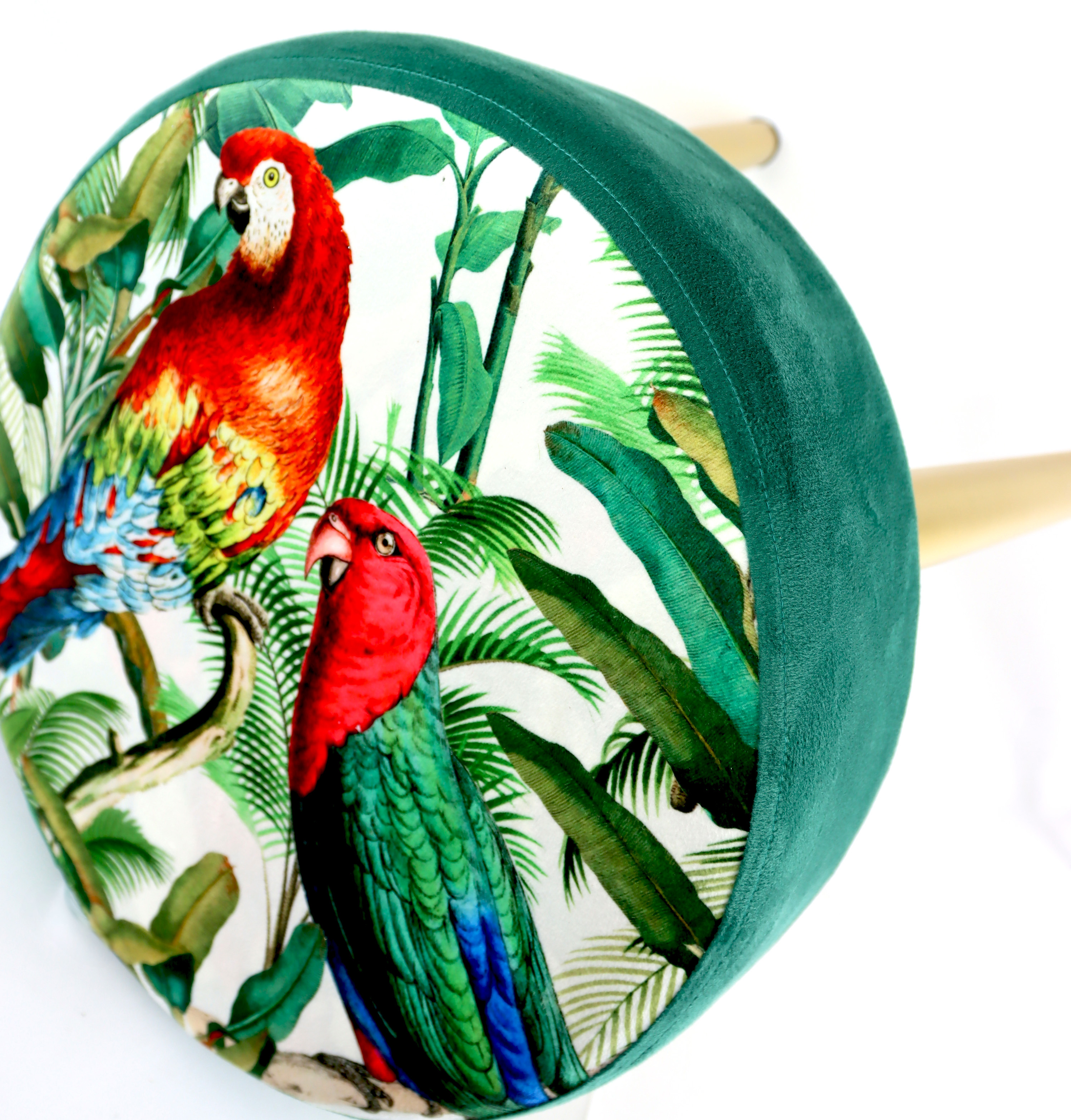 Hergestellt aus hochwertigem Velvet PE (Polyester), Sponge PU (Polyurethan) und solidem Wood DMF (Mitteldichte Holzfaserplatte), vereint der Hocker "PARROTS" außergewöhnliches Design mit strapazierfähiger Qualität. Der Baumwollstoff in samtiger Optik verleiht dem Hocker eine weiche und luxuriöse Anmutung, die durch das farbenfrohe Papagai-Muster lebendig und ausdrucksstark wirkt. Mit einem Durchmesser von etwa 40 cm bietet er die perfekte Größe für vielfältige Einsatzmöglichkeiten – sei es als Fußhocker, zusätzliche Sitzgelegenheit oder stilvolles Dekorationsobjekt in Wohnräumen, Boutiquen oder Cafés.