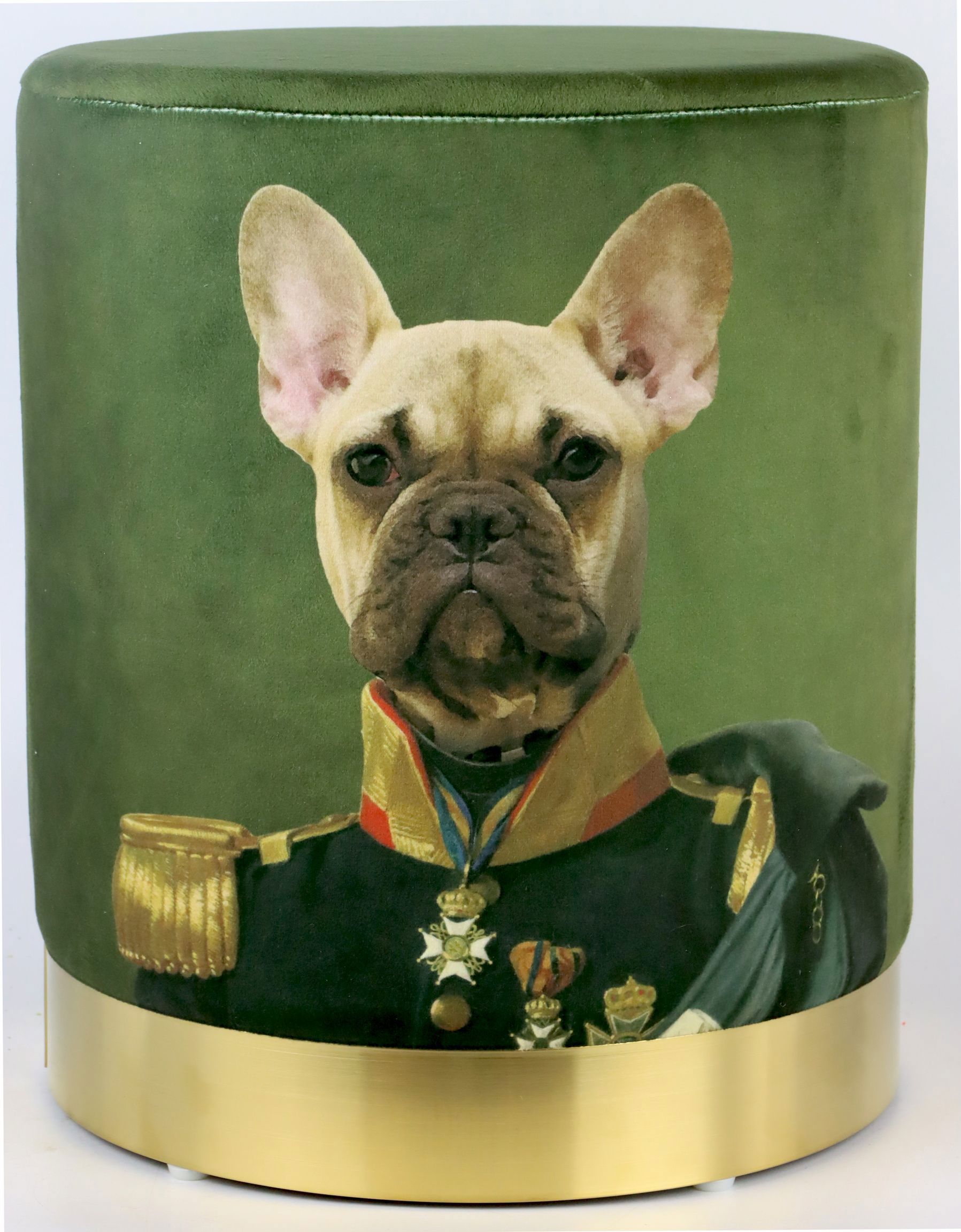 Das exquisite Design des Sitzpoufs "King of Dogs" kombiniert ein modernes grünes Farbschema mit klassischen Elementen und verleiht Ihrem Wohnraum ein zeitloses und auffälliges Aussehen. Ideal für den Herbst/ Winter, bietet dieses attraktive und komfortable Möbelstück ein gemütliches Ambiente und wird sicherlich der Mittelpunkt jeder Raumgestaltung sein.