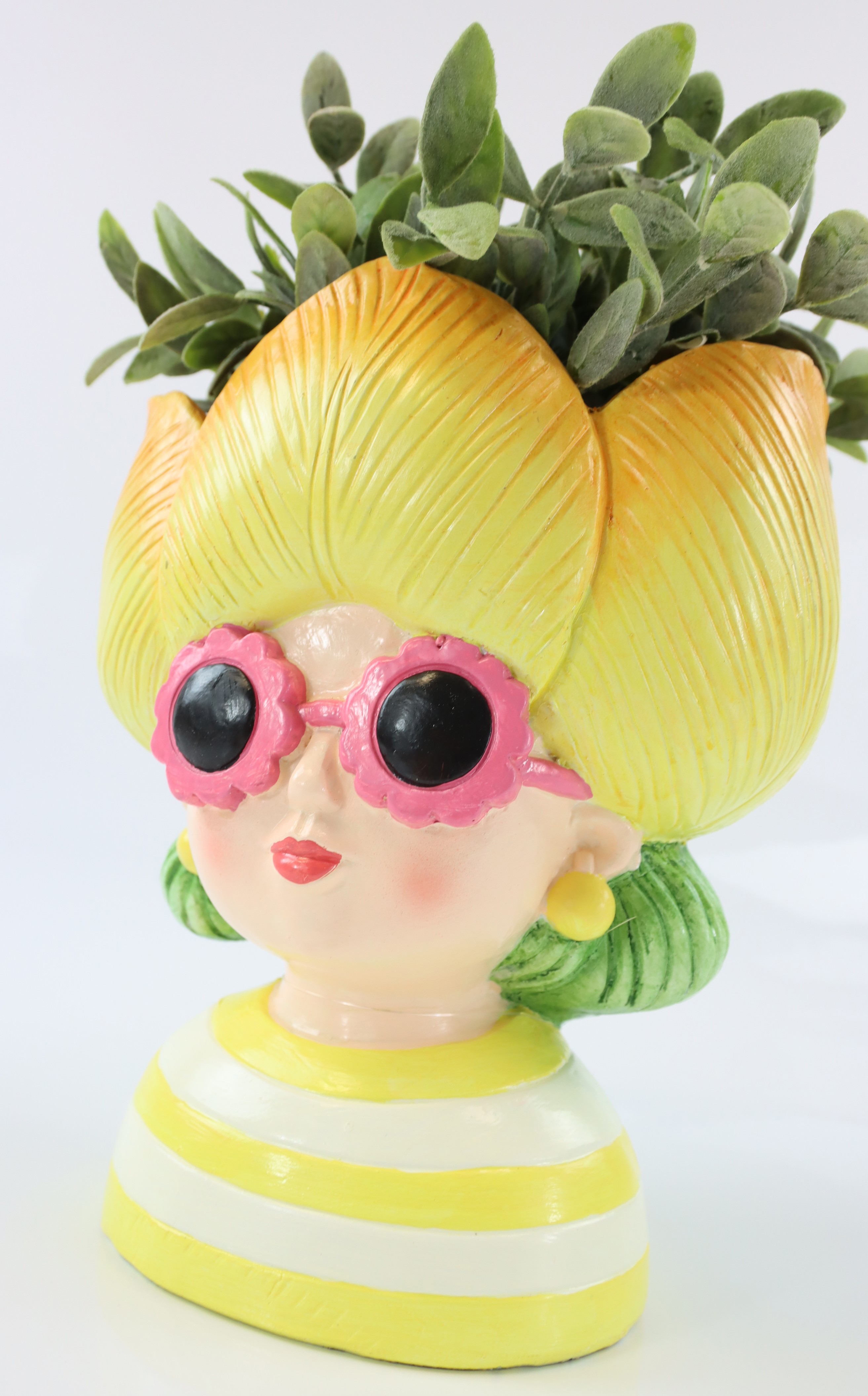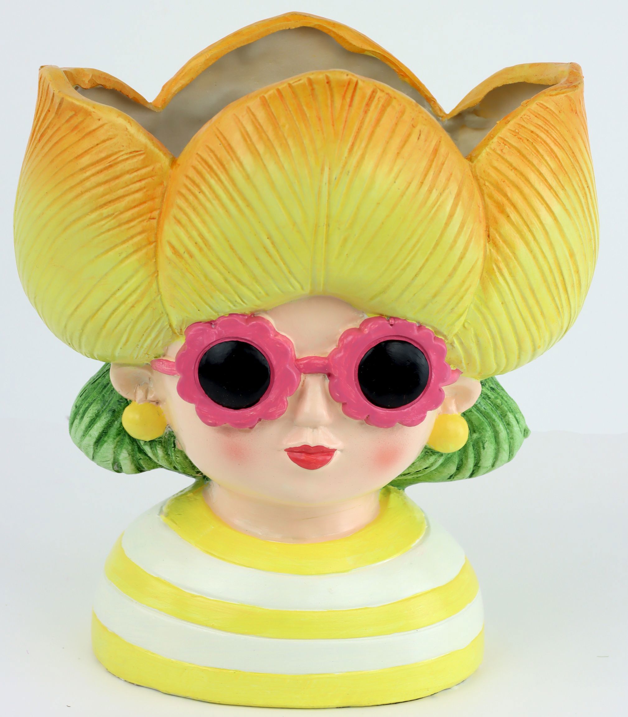 Entdecken Sie das einzigartige Pflanzobjekt "Tulip Girl", das Ihrem stationären Einzelhandel im Bereich Wohnen und Lifestyle eine frische und moderne Note verleiht. Dieses besondere Pflanzobjekt besticht durch seinen künstlerischen Frauenkopf, der mit einer anmutigen gelben Blume verziert ist. Mit einer Höhe von ca. 22 cm eignet sich "Tulip Girl" ideal zum Dekorieren von Wohnräumen, Eingangsbereichen oder Schaufenstern und zieht garantiert alle Blicke auf sich.