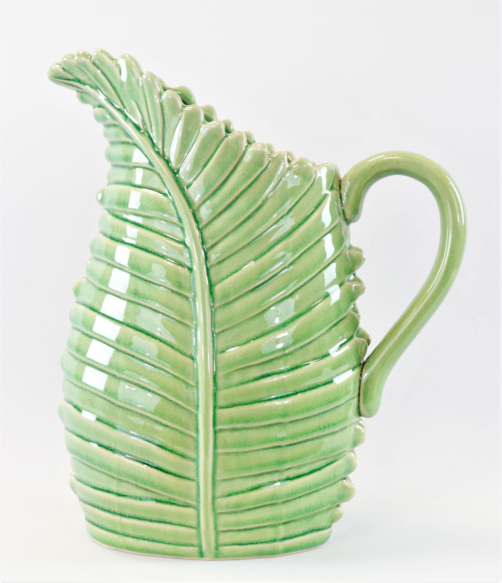 Entdecken Sie den eleganten Keramikkrug "FOLIAGE," der mit seiner einzigartigen Blattform und einem großzügigen Fassungsvermögen von 3,9 Litern ein absolutes Highlight in jeder Inneneinrichtung darstellt. Dieser exquisite Krug ist die ideale Wahl für Einzelhändler, die ihren Kunden stilvolle und funktionale Wohnaccessoires für die Frühjahrs- und Sommersaison anbieten möchten.