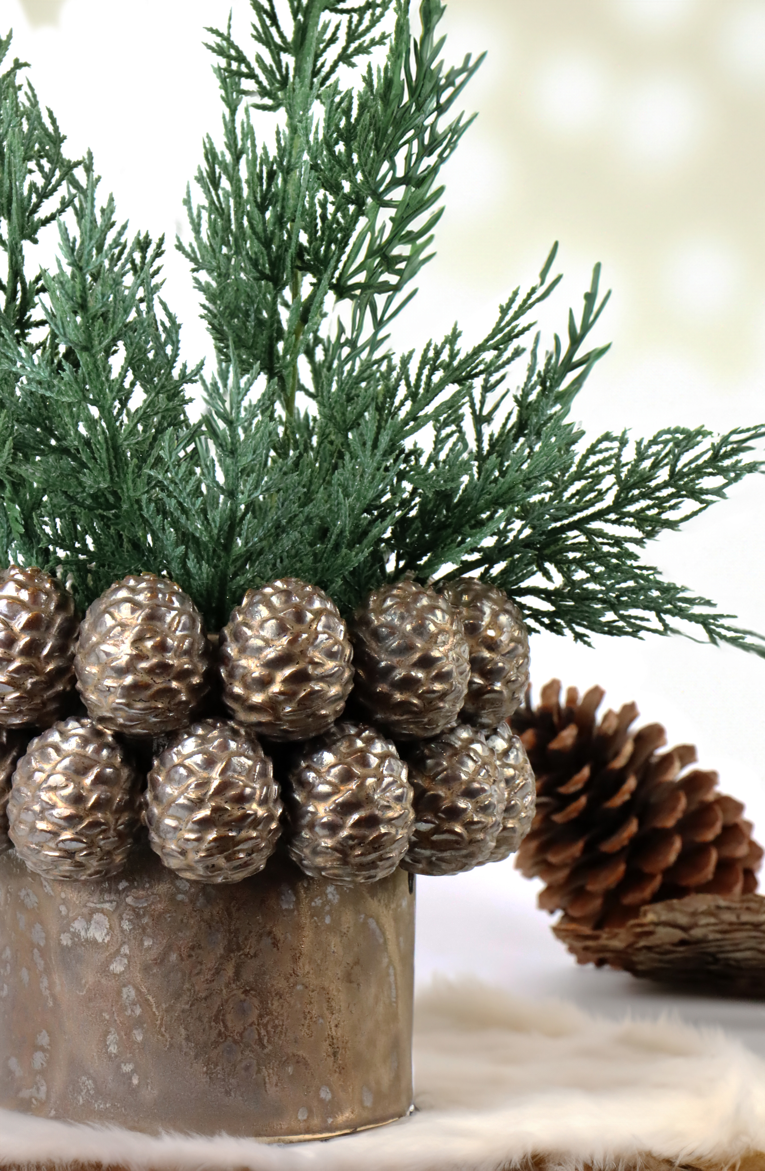 SEO-Relevante Keywords: Übertopf, Keramik, Tannenzapfen, Herbst/Winter Dekoration, Wohnen und Lifestyle, Einrichtung, Einzelhandel, Geschenkidee, Natürliches Ambiente.
