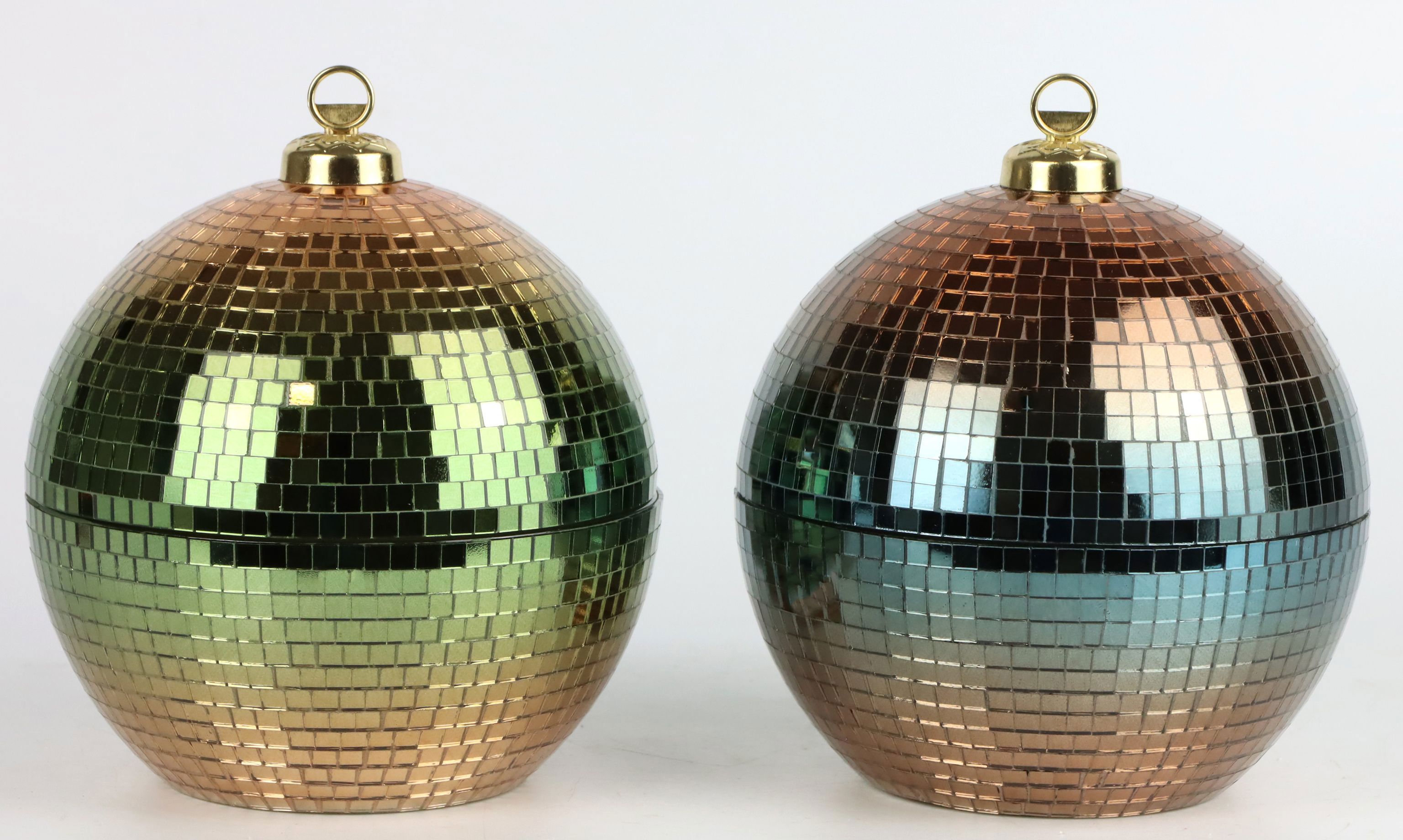 - Elegantes 2-teiliges Kugeldosenset in trendigen Herbst-/Winterfarben Goldgrün und Goldblau.