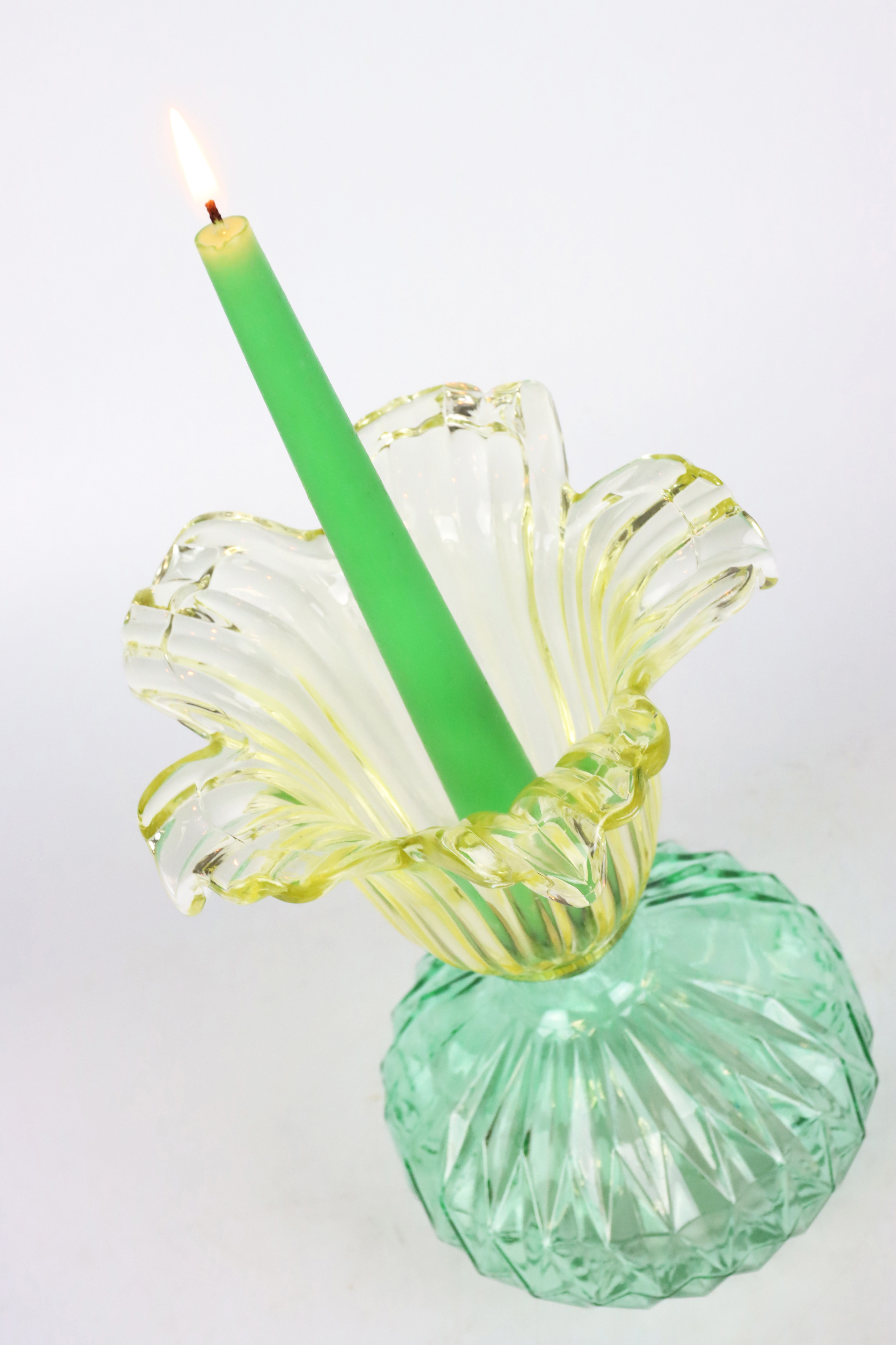 Gefertigt aus hochwertigem Glas, zeichnen sich die Kerzenleuchter durch eine robuste Bauweise und eine exquisite Farbgebung aus, die jeden Raum in ein warmes Licht taucht. Mit einer Höhe von etwa 23 cm bieten diese Leuchter die ideale Größe, um sowohl auf dem Esstisch als auch auf dem Kaminsims oder der Fensterbank zur Geltung zu kommen. Die bunte Gestaltung des Kerzenleuchters "San Remo" erinnert an die lebhaften Farben der italienischen Riviera und bringt die Leichtigkeit des Frühlings und Sommers in jeden Raum.