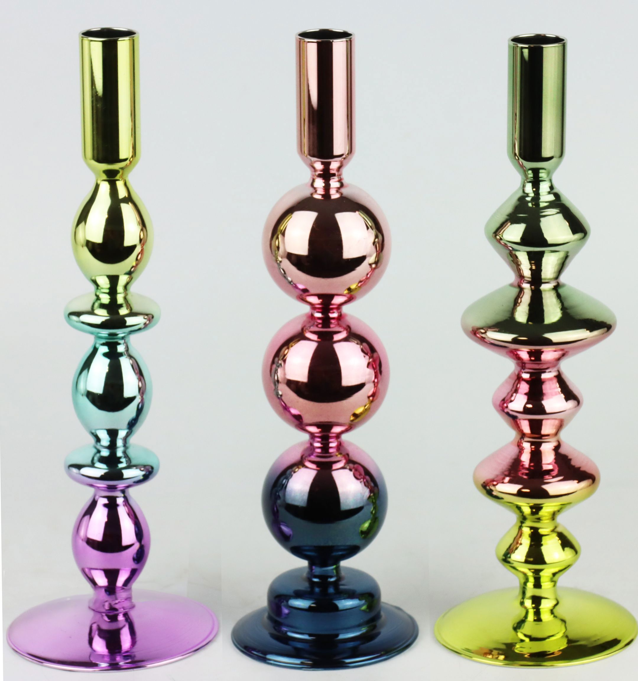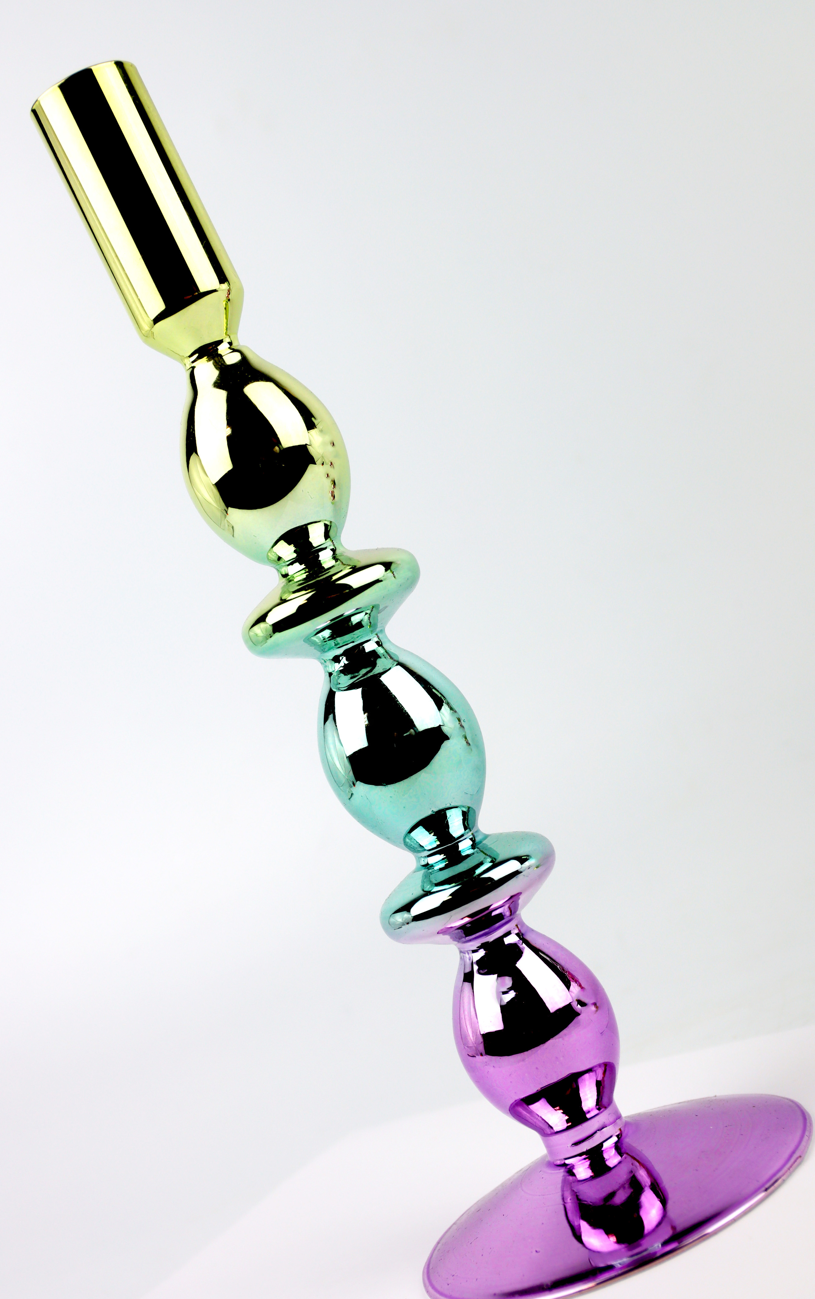- **Edles Design:** Das Kerzenleuchter-Set "Radiance" beeindruckt durch seine bunte, glänzende Oberfläche und zieht damit alle Blicke auf sich.