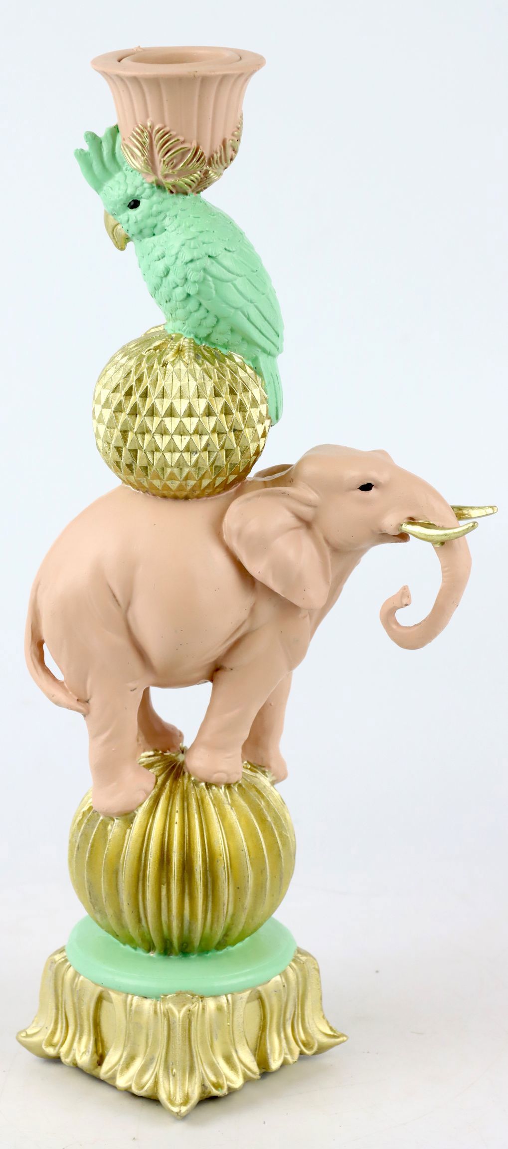 Holen Sie sich die Magie des fernen Ostens in Ihr Zuhause oder Ihr Ladengeschäft mit unserem eindrucksvollen LEUCHTER "EXOTIC ELEPHANT". Dieser außergewöhnliche Kerzenhalter vereint die Anmut exotischer Elefanten mit faszinierenden Design-Elementen in den Trendfarben Beige und Grün und wird so zum Highlight in jedem Raum. Gefertigt aus einer Kombination von Keramik, Polyresin und Metall, verspricht dieser dekorative Leuchter nicht nur Stabilität und Langlebigkeit, sondern auch einen sympathischen, natürlichen Look, der perfekt in die Frühjahrs- und Sommerkollektionen passt.