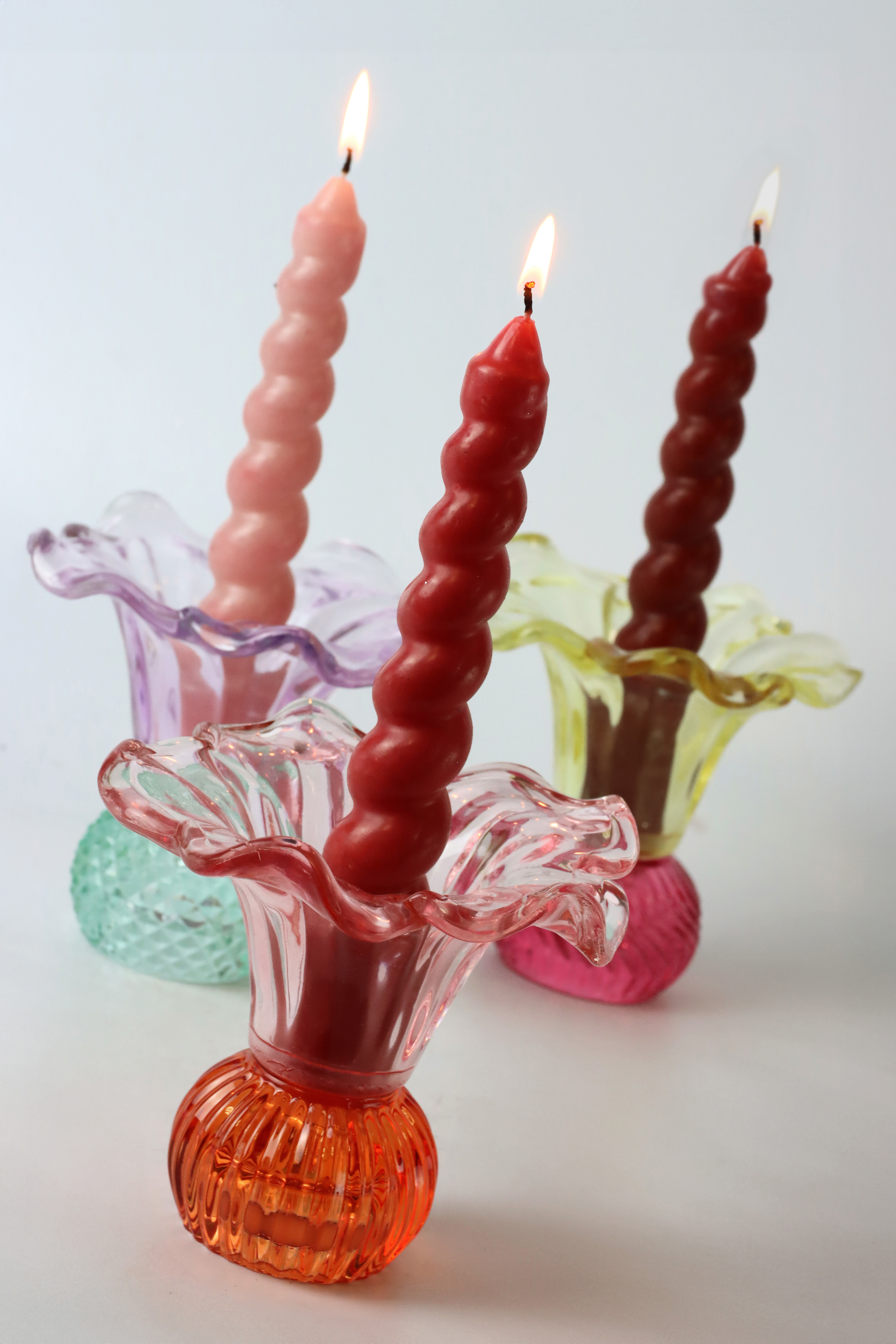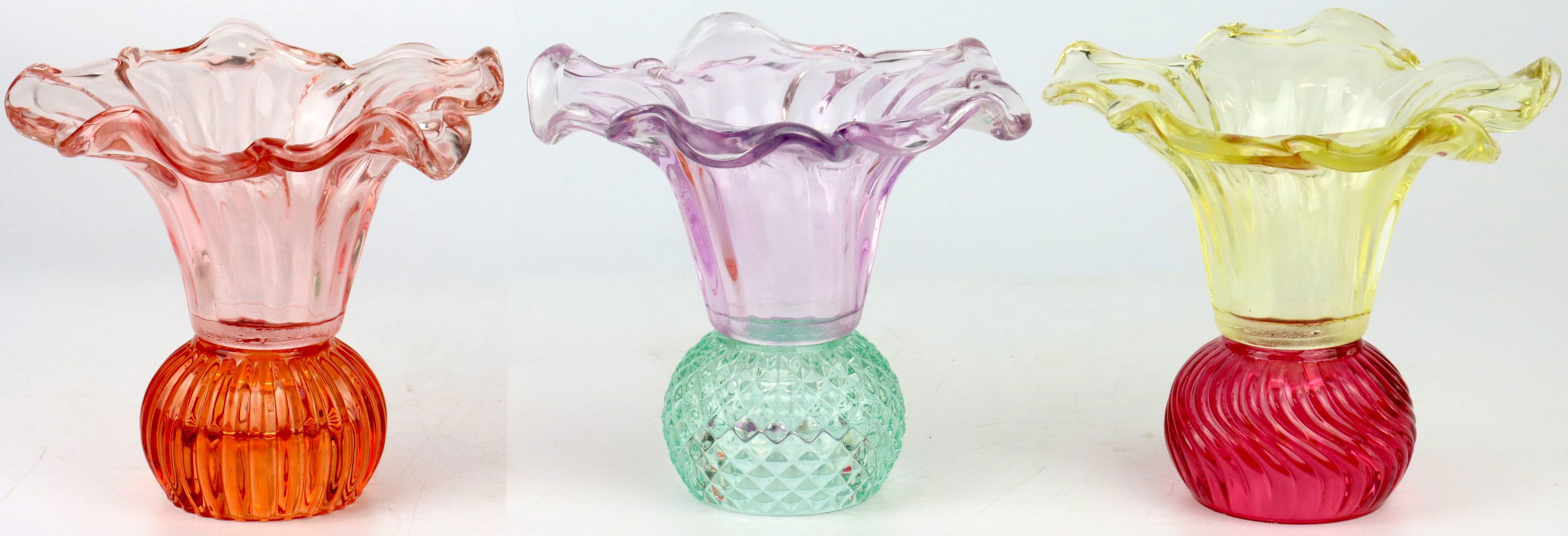 Dank der brillanten Farbgebung bringt dieses Glasset Lebendigkeit in jedes Zuhause. Die sorgfältig ausgewählten Farbtöne machen es möglich, einzelne Akzente zu setzen oder harmonische, bunte Arrangements zu kreieren. Ihre Kunden werden die Möglichkeit lieben, mit diesen Vasen/Windlichtern kreative Tischdekorationen oder Fensterdekorationen zu gestalten.