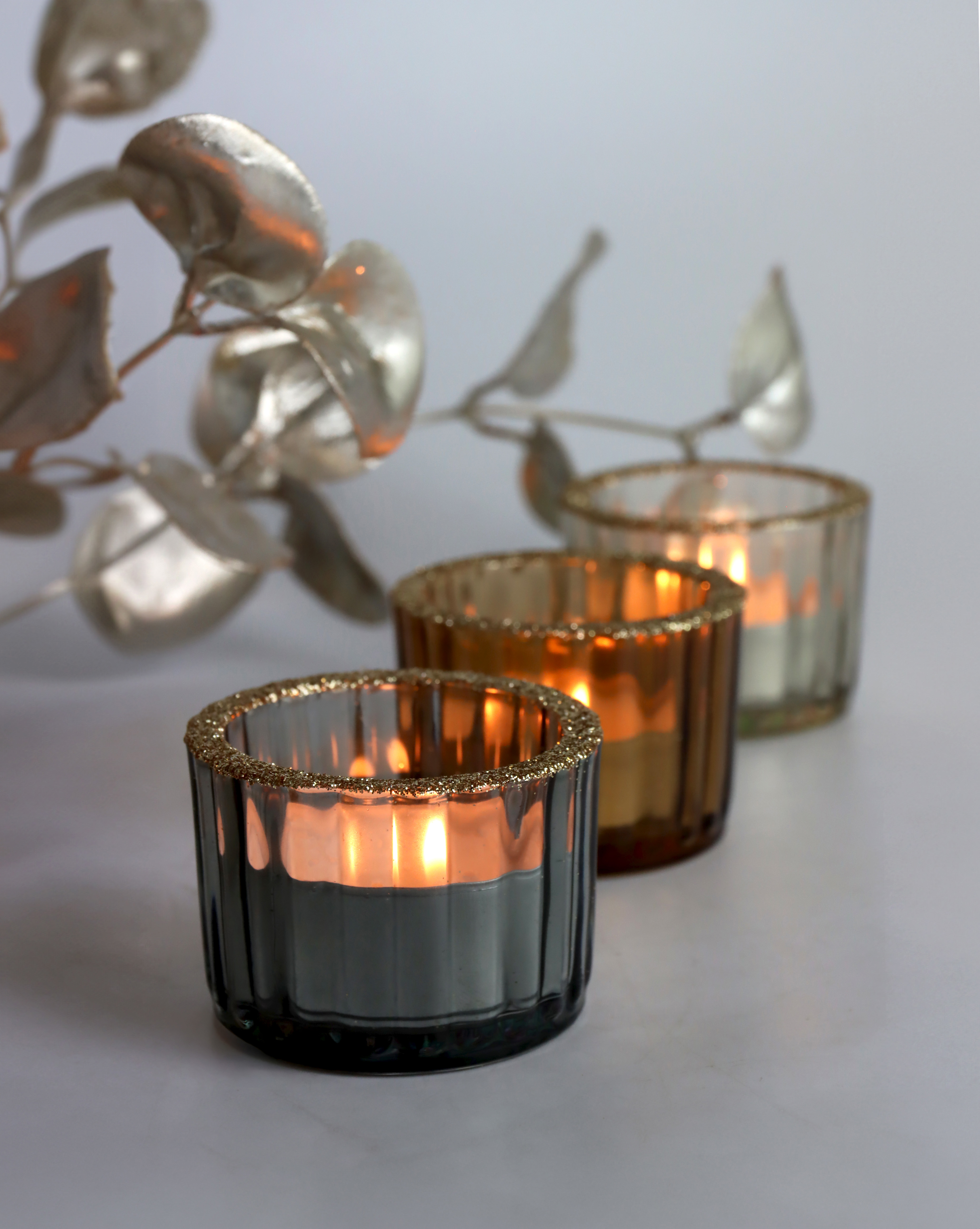 - Dreiteiliges Set aus Glas-Teelichthaltern