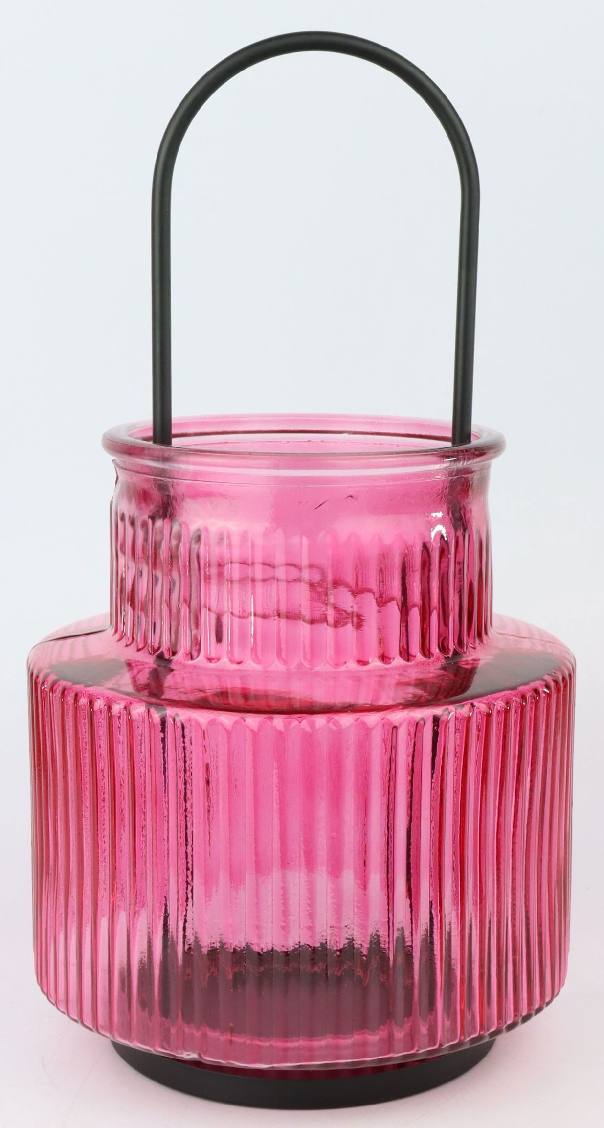 Erhellen Sie mit der LATERNE "SÒLLER" die Frühlings- und Sommerabende Ihrer Kunden und schaffen Sie eine zauberhafte Atmosphäre in jedem Wohnraum oder Außenbereich. Diese stilvolle Laterne besticht durch ihr harmonisches Zusammenspiel von hochwertigem Glas und robustem Eisen und fügt sich nahtlos in jede Wohndekoration im Bereich Wohnen und Lifestyle ein. Mit einer Höhe von etwa 33 cm und einer auffälligen pinken Farbgebung ist sie ein echter Blickfang, der die Sinne anspricht und zum Verweilen einlädt.