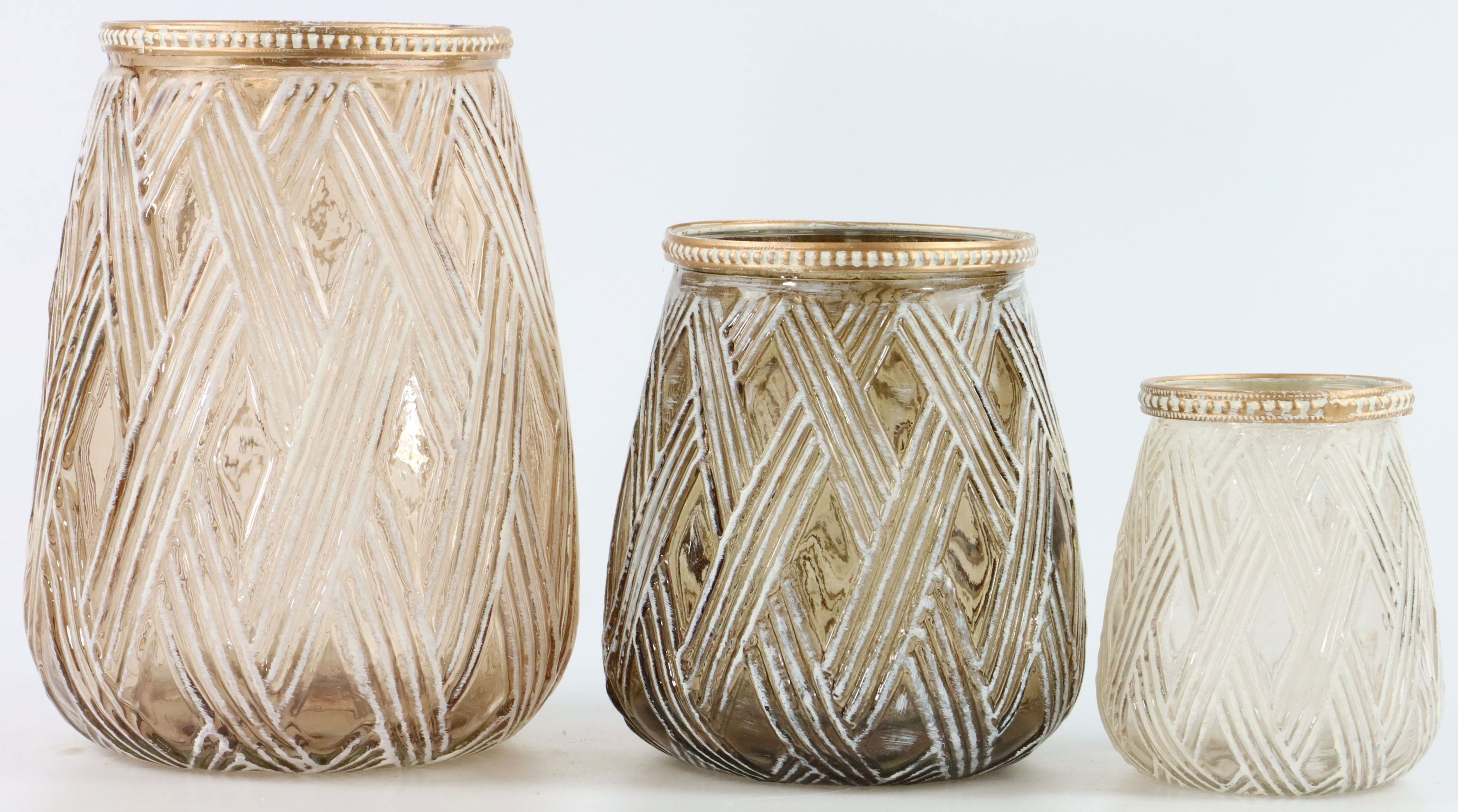 - Dreiteiliges Set: Inklusive drei Vasen/Windlichter in unterschiedlichen Größen