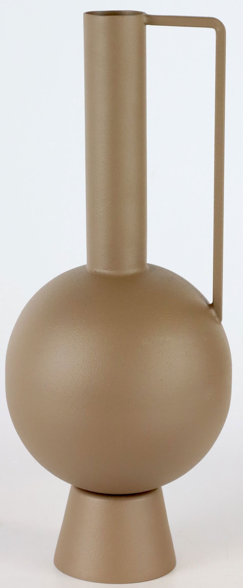 Die Vase "Skagen" ist aus robustem Eisen gefertigt und kommt in einer edlen dunkelbraunen Optik daher. Mit einer Größe von etwa 29,5 cm setzt sie effektvolle Akzente, ohne zu dominant zu wirken. Ihre Farbgebung vermittelt eine behagliche Atmosphäre, die besonders in der Herbst- und Winterzeit zur Geltung kommt.