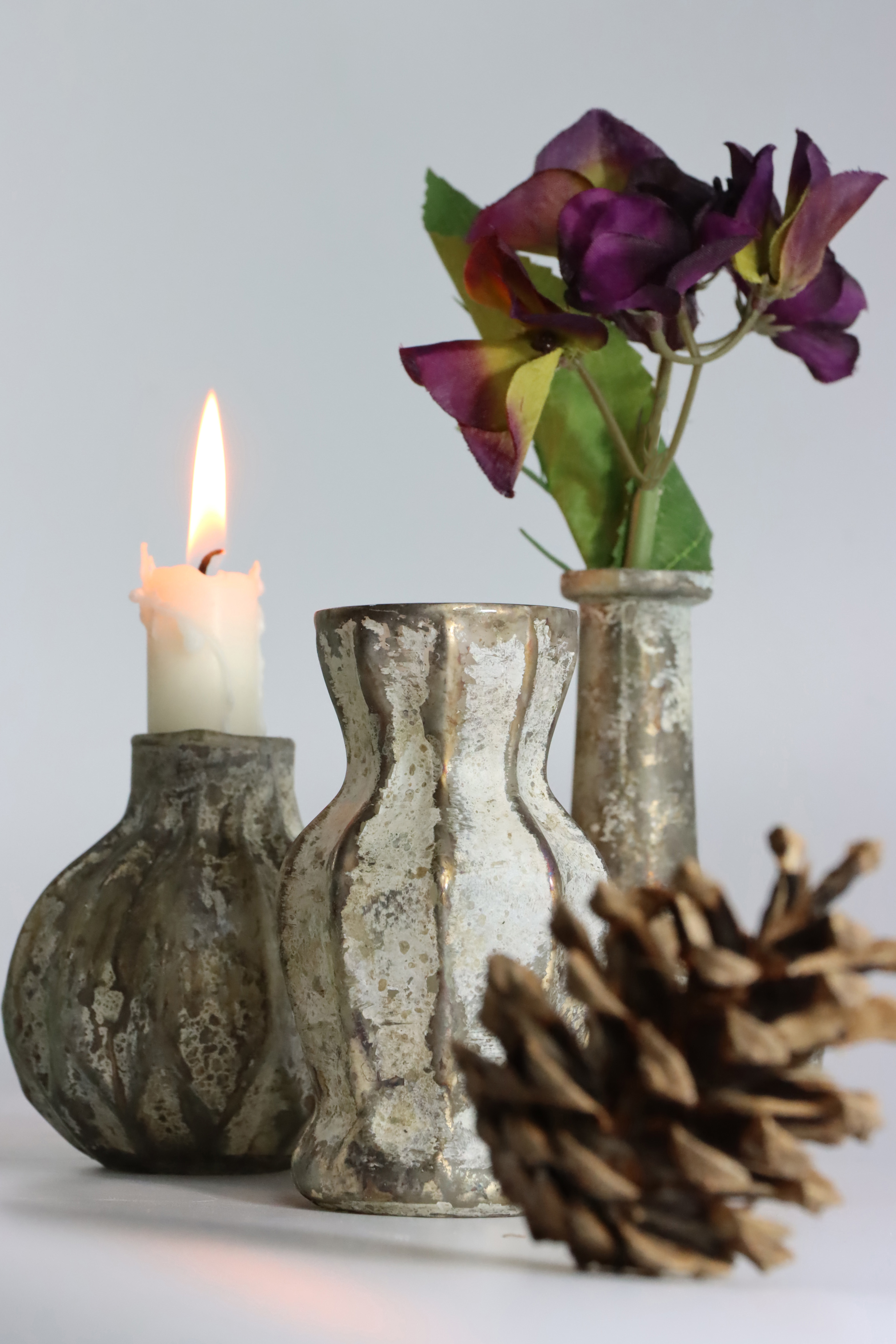 Suchmaschinenoptimierte Schlüsselwörter: Vasenensemble, dekorative Vasen, antikes Design, Wohnaccessoires, Einrichtungsgegenstände für den Wohn- und Lifestyle-Bereich, dekorative Glasvasen, Einzelhandel Einrichtungsgegenstände, Vasenensemble "Loire".
