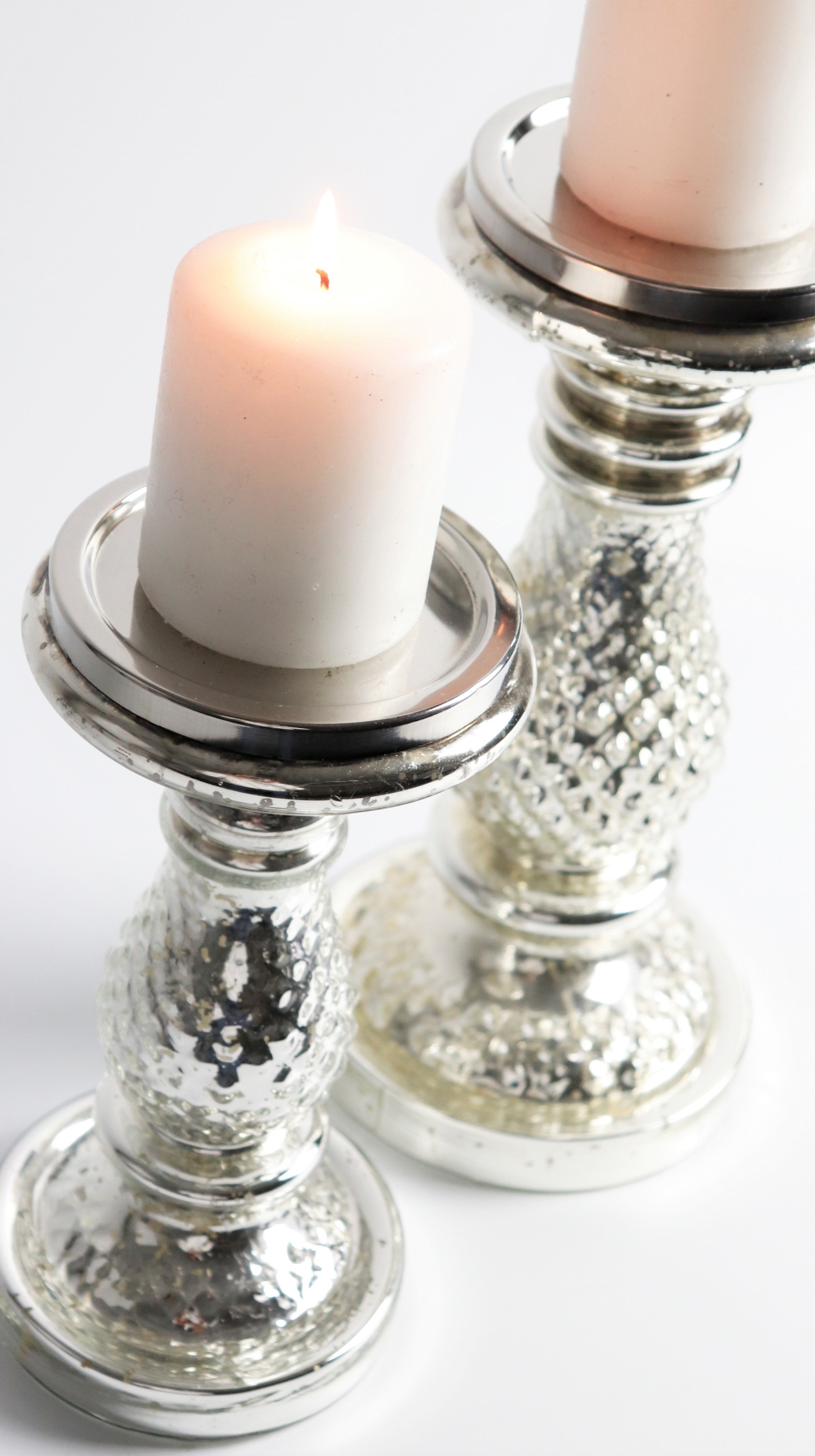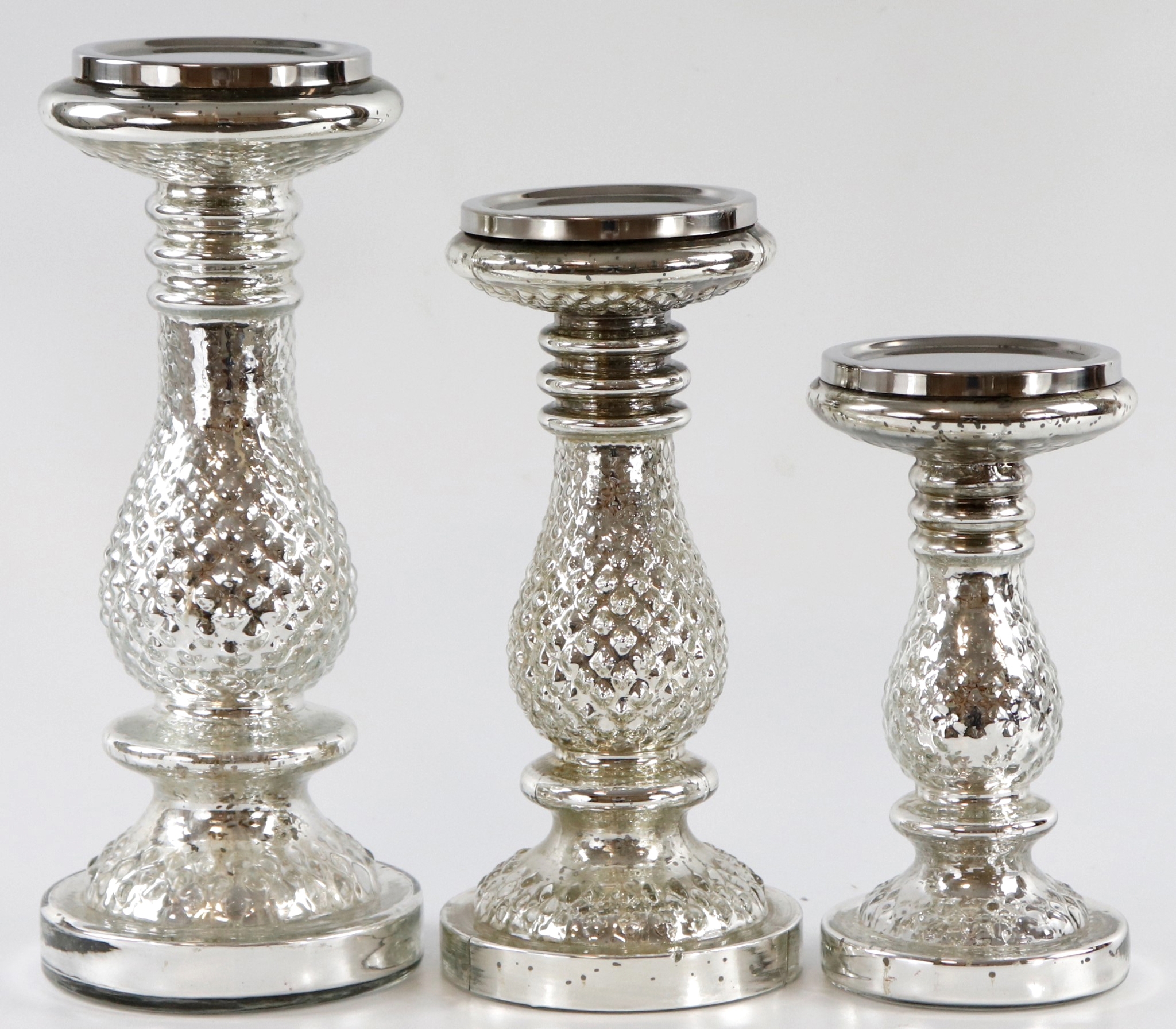 - Hochwertiges 3-teiliges Leuchterset aus silbernem Glas