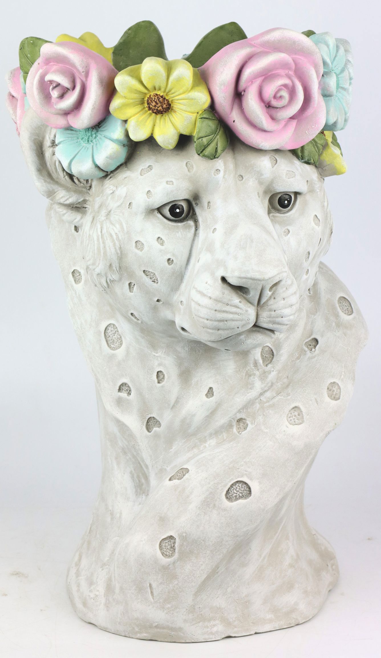 Entdecken Sie den einzigartigen Pflanztopf "HIPPIE LEO" – eine stilvolle und charmante Ergänzung für jede Wohn- und Lifestyle-Einrichtung. Dieser Pflanztopf ist ideal für den Frühling und Sommer und bringt frischen Wind in Ihre Dekoration. Gefertigt aus hochwertigem Polyresin, zeichnet sich der "HIPPIE LEO" durch sein faszinierendes Leopardendesign mit blumigen Akzenten aus, welches zu einem sofortigen Eyecatcher in jedem Raum wird, sei es drinnen im Wohnzimmer oder draußen auf der Terrasse.