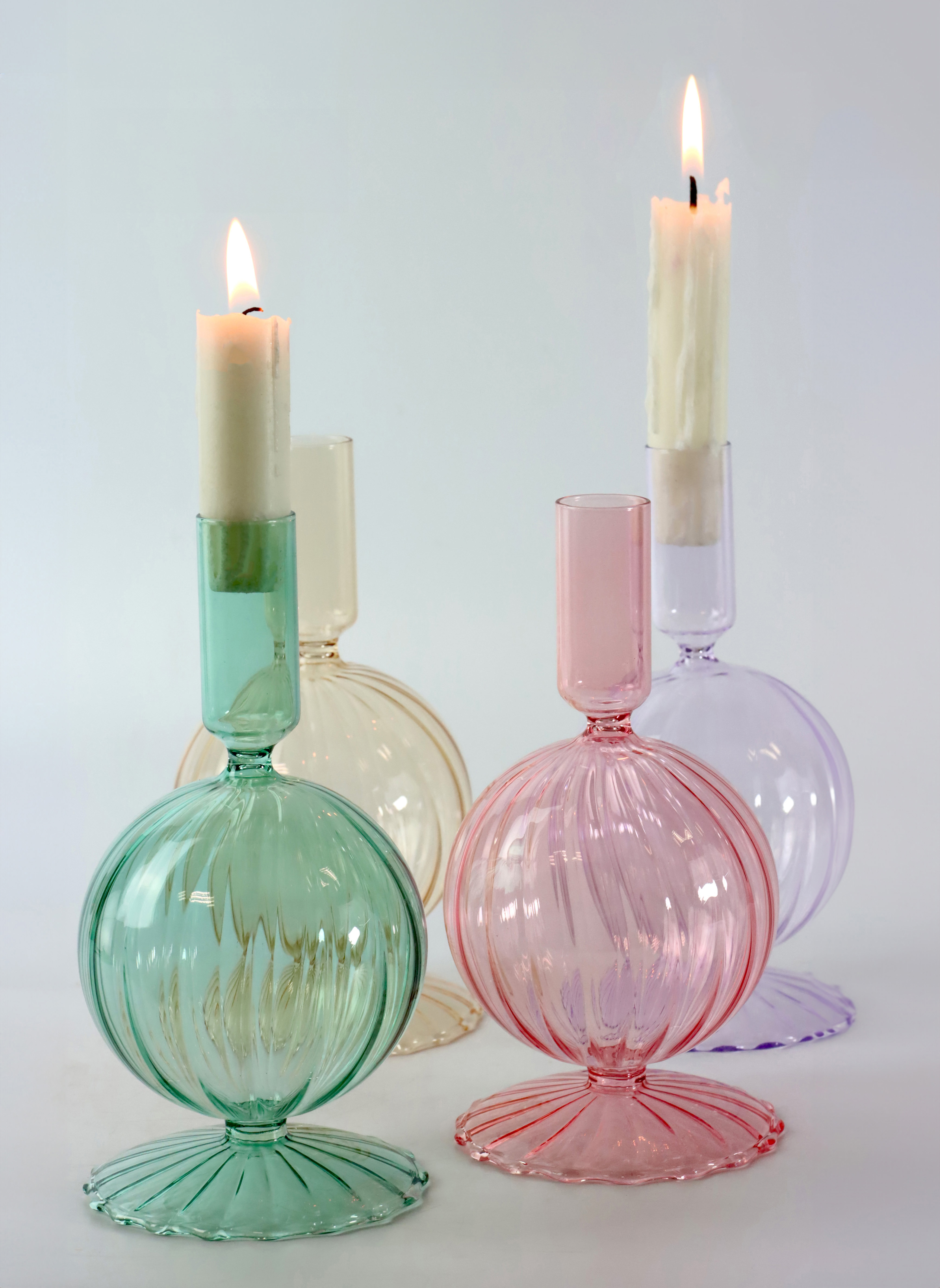 - Umfangreiches Set: Vier Leuchter aus hochwertigem Glas