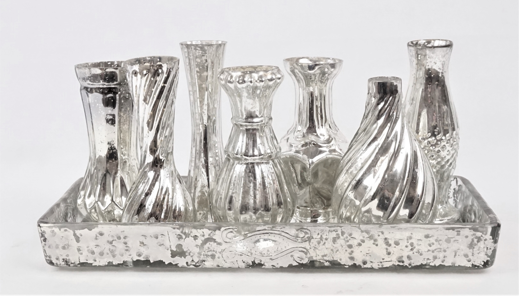 Gestaltet für den modernen stationären Einzelhandel, ermöglicht Ihnen das Vasenensemble "Poesie" kreative Freiheit bei der Ausstellung von Blumenarrangements, saisonalen Dekorationen oder anderen kreativen Präsentationen. Jede Vase in diesem Set ist ein Kunstwerk für sich, jedoch entfalten sie in der Kombination auf dem silbernen Tablett ihr volles Potenzial als beeindruckendes Gesamtarrangement. Die hochwertige Verarbeitung sowie das zeitlose Design machen die Vasen zu einem dauerhaften Begleiter in jeder Wohneinrichtung.
