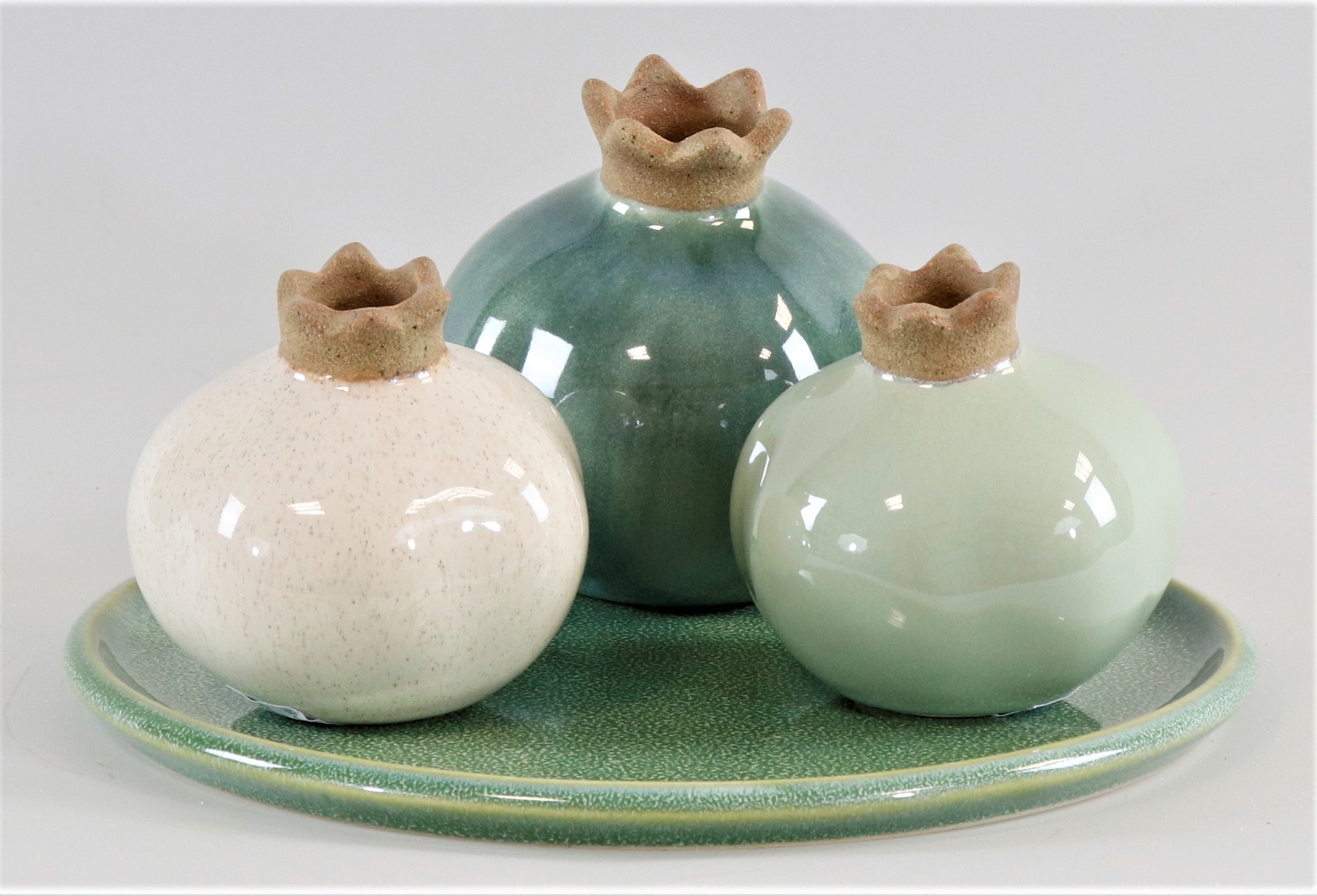 - Enthält zwei Vasen mit 8 cm und 11 cm Höhe sowie einen Teller mit 21 cm Durchmesser