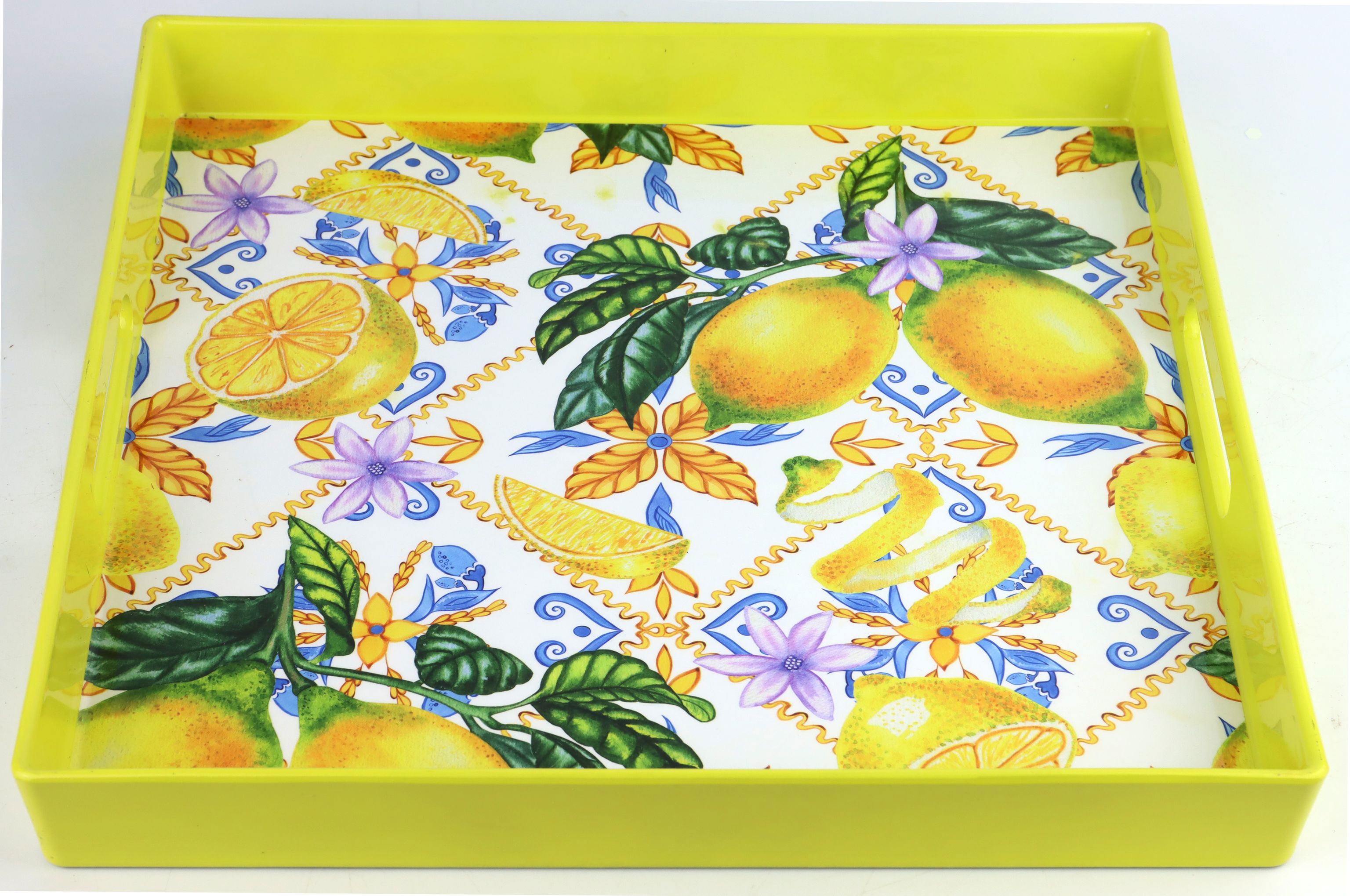 Entdecken Sie das erfrischende Highlight für Ihren Laden: das Tablett "Lucky Lemon" aus unserer exklusiven Frühjahr/Sommer-Kollektion. Dieses ansprechende Serviertablett mit Zitronenmotiv bringt frischen Wind in Ihr Sortiment und bietet eine perfekte Mischung aus Funktionalität und dekorativem Akzent für das Interieur Ihrer Kunden.