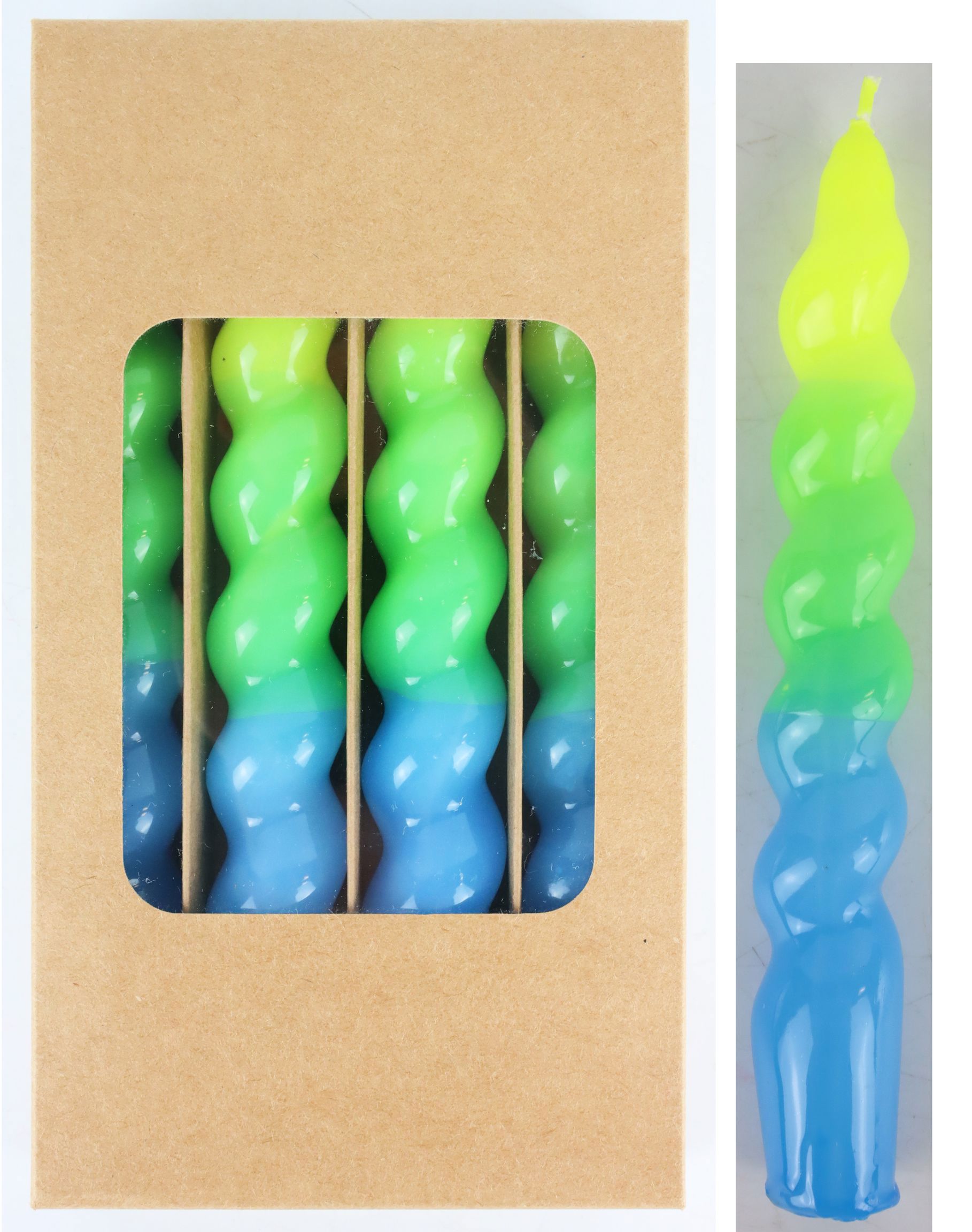- 4-teiliges Set gedrehter Stabkerzen in Blau-Grün für elegante Dekoration