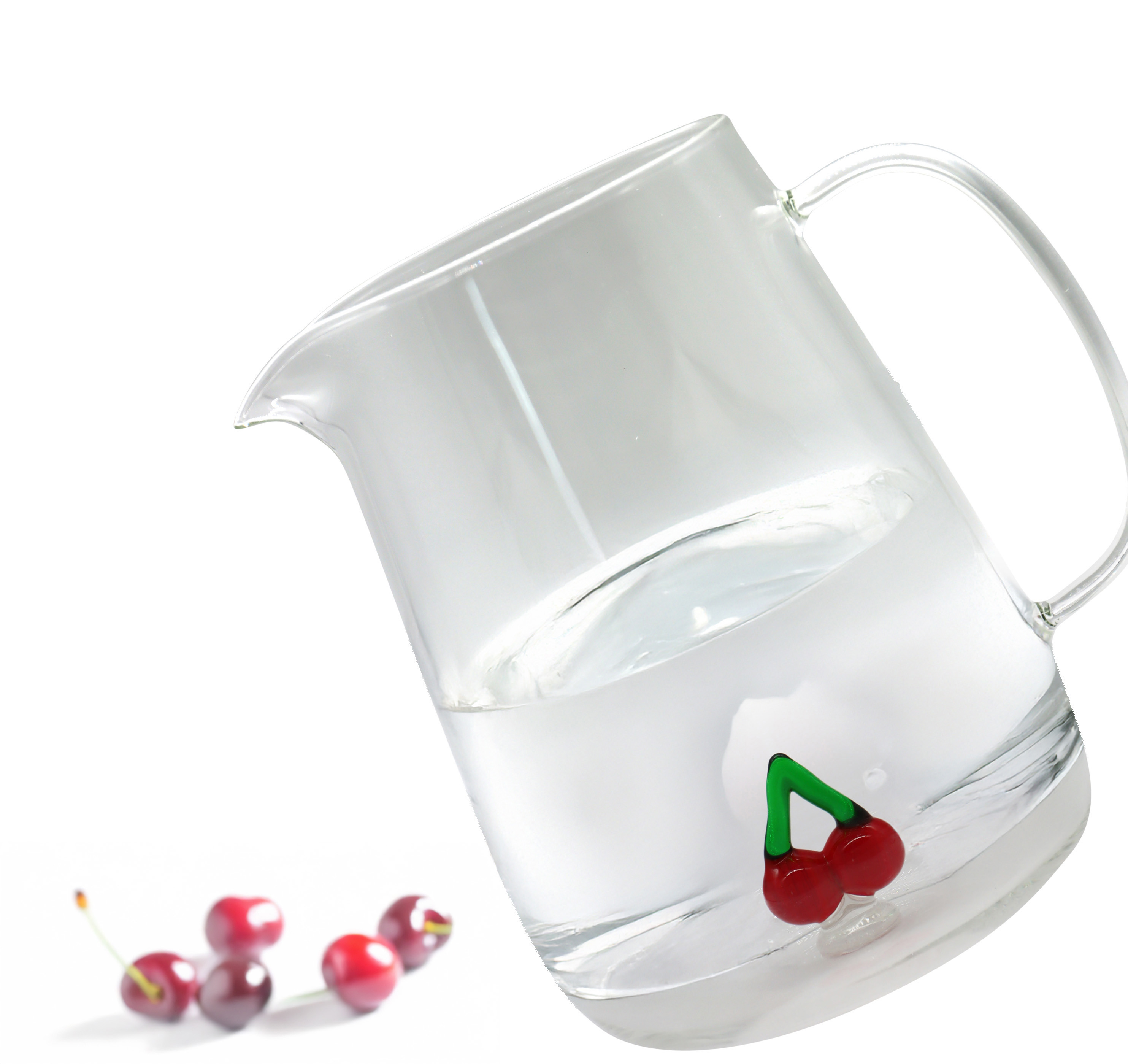 Hergestellt aus hochwertigem Glas, vereint der Glaskrug "CHERRY" Ästhetik mit Langlebigkeit. Das bezaubernde Kirschdesign verleiht Ihrem Tischarrangement einen frischen und ansprechenden Look und macht diesen Krug zu einem Blickfang. Die glasklare Transparenz ermöglicht es, den Inhalt wunderbar zur Geltung zu bringen – ob farbenfrohe Limonaden, duftende Tees oder belebendes Wasser mit frischen Früchten.