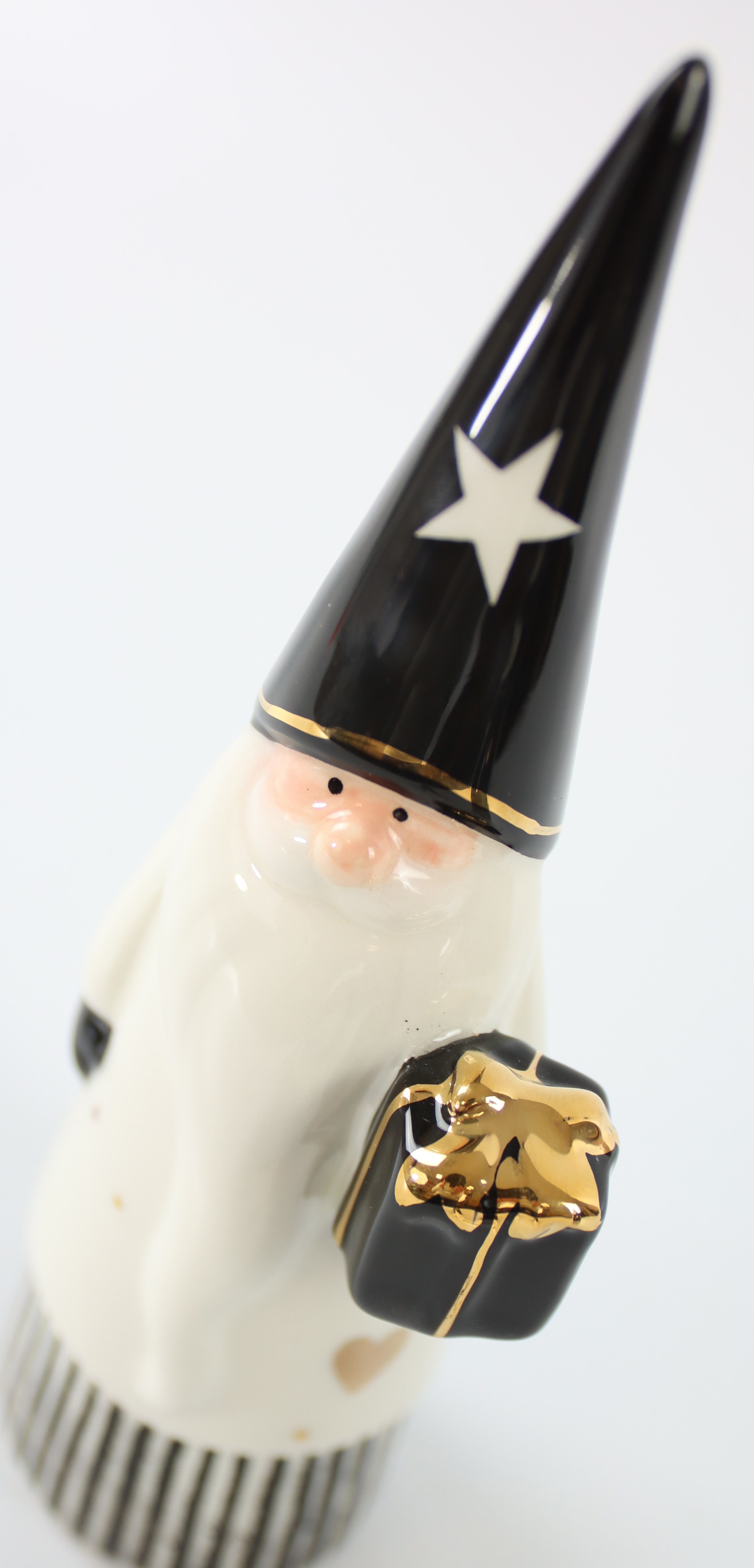 - Modernes Design: Einzigartige schwarz-weiße Keramik Weihnachtsmänner.