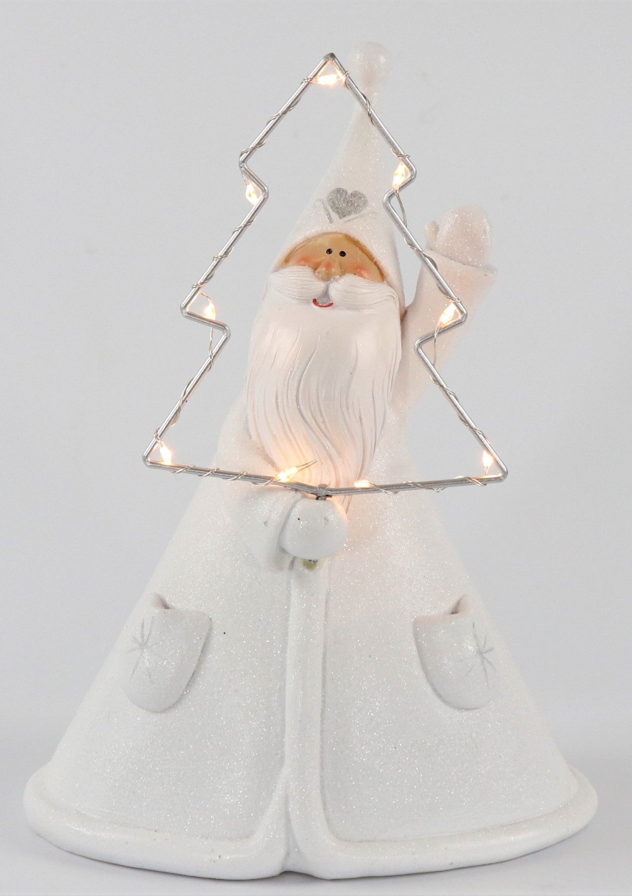 Verleihen Sie Ihrer Winter-Wunderwelt im Einzelhandel eine magische Note mit unserem zauberhaften LED-Weihnachtsmann. Der LED-Weihnachtsmann mit Tannenbaum aus edler Keramik und detailliert gearbeitetem Metall ist die perfekte Festtagsdekoration für jedes stilvolle Zuhause und jeden trendbewussten Laden im Bereich Wohnen und Lifestyle. Mit einer Höhe von ca. 23 cm ist dieser batteriebetriebene Weihnachtsmann nicht nur ein echter Hingucker, sondern auch ein praktisches Highlight in Ihrer Weihnachtssaison.