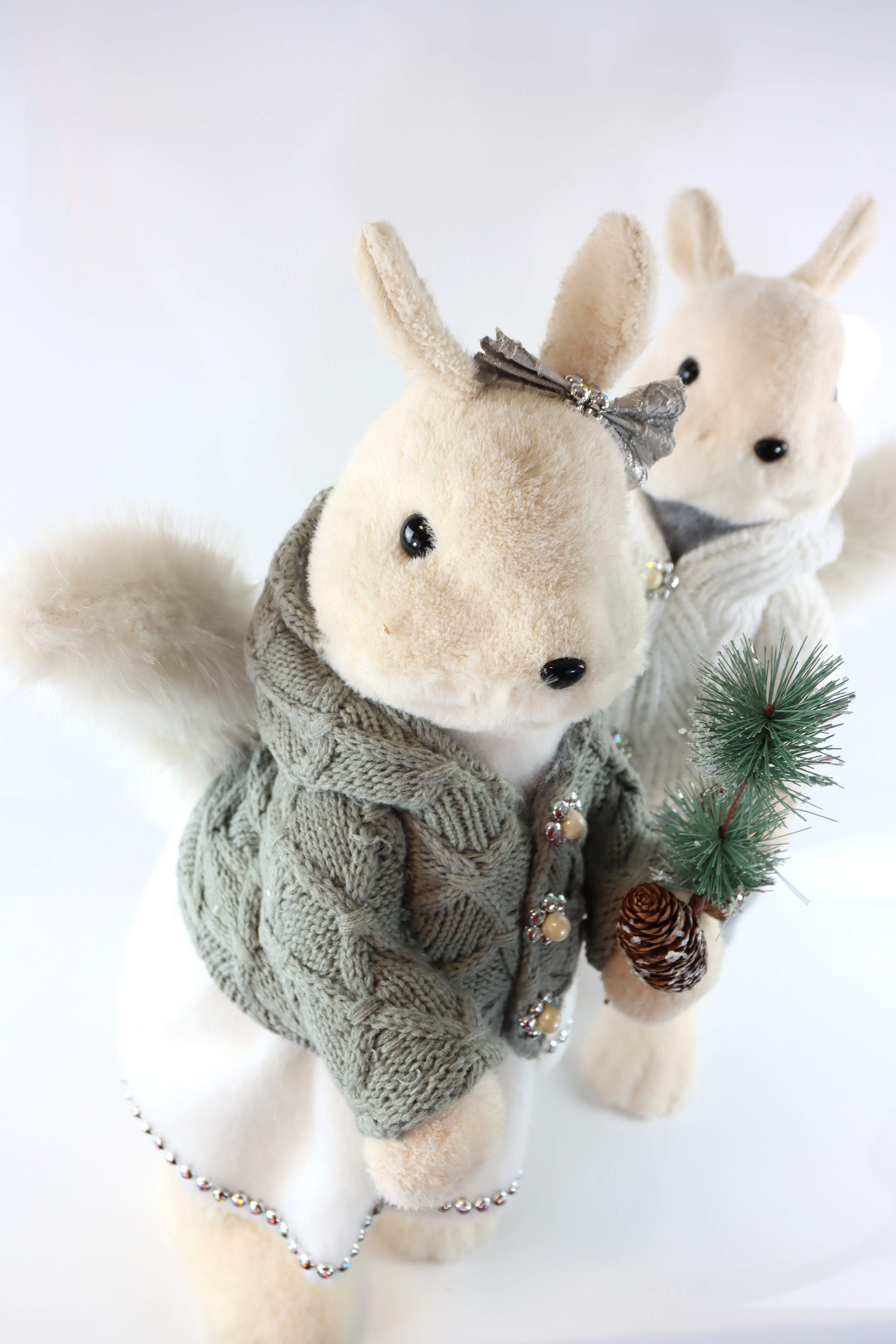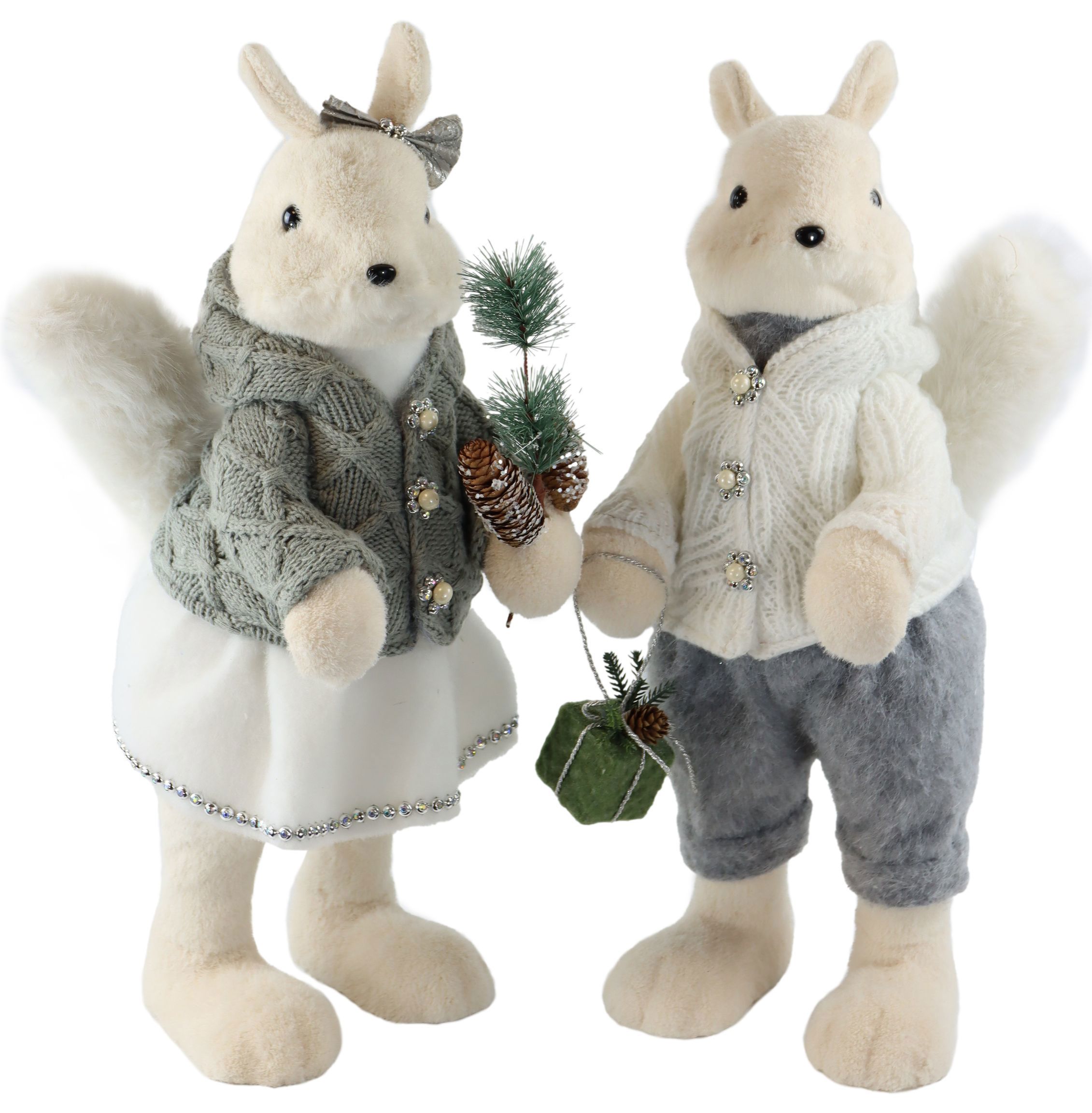 Geben Sie Ihrer saisonalen Dekoration einen bezaubernden Charakter mit unserem charmanten Eichhörnchen-Set "Frosty Tails". Dieses zweiteilige Set verkörpert den Geist des Winters und verleiht Ihrem Sortiment eine spezielle Note, die Kunden lieben werden. Die grauen und weißen Eichhörnchen stehen stolz als symbolisches Duo, das perfekt zur Weihnachtszeit passt und gleichzeitig stilvolle Eleganz und spielerische Freude ausstrahlt. Die detailreiche Gestaltung und die Verwendung hochwertiger Materialien machen dieses Set zu einem Muss für jeden stationären Einzelhändler im Bereich Wohnen und Lifestyle.