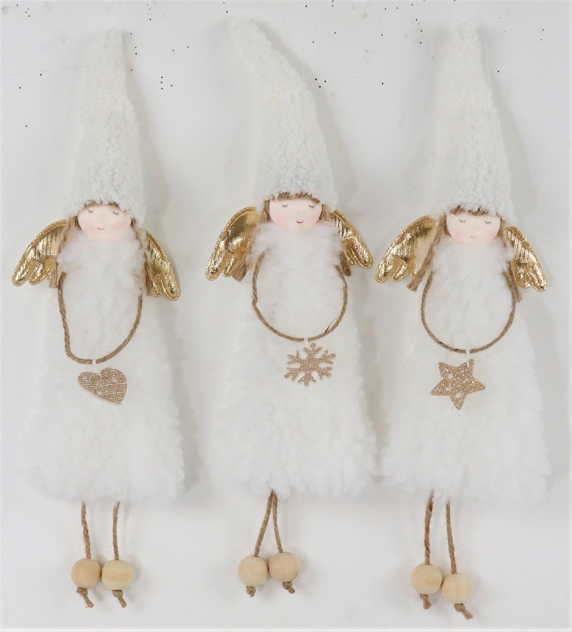 Hergestellt aus hochwertigem Polyester Cotton und Kunstfell, bietet dieses Set elegante Engelfiguren, die eine Atmosphäre von Ruhe und Frieden in jeden Raum bringen. Diese Engel sind etwa 32 cm groß und stehen für Cuteness und Perfektion. Ihre weiße Farbe verkörpert Reinheit und Unschuld und bringt etwas Helligkeit in die dunkle Jahreszeit.