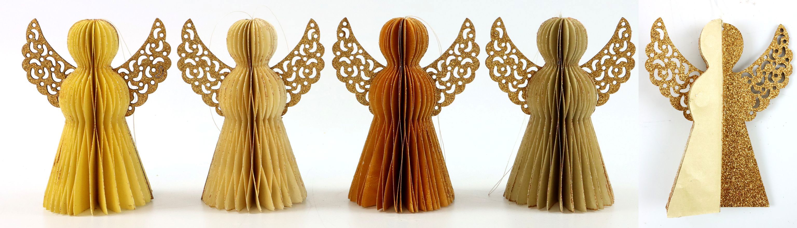 Unsere faltbaren Engel-Anhänger bringen Eleganz und stilvolle Weihnachtsstimmung in jedes Zuhause. Sie sind in einer ansprechenden Grüntönung gehalten und durch einen edlen Goldrand abgerundet. Mit einer komfortablen Größe von 8cm passen sie perfekt an jeden Christbaum, an Fenster, Türen oder auch Geschenke. Sie sind aus hochwertigem Papier gefertigt und überzeugen mit einer ausgezeichneten Verarbeitung und langanhaltender Haltbarkeit. Das Set besteht aus vier Anhängern - ideal, um in verschiedenen Bereichen des Hauses harmonische Akzente zu setzen.