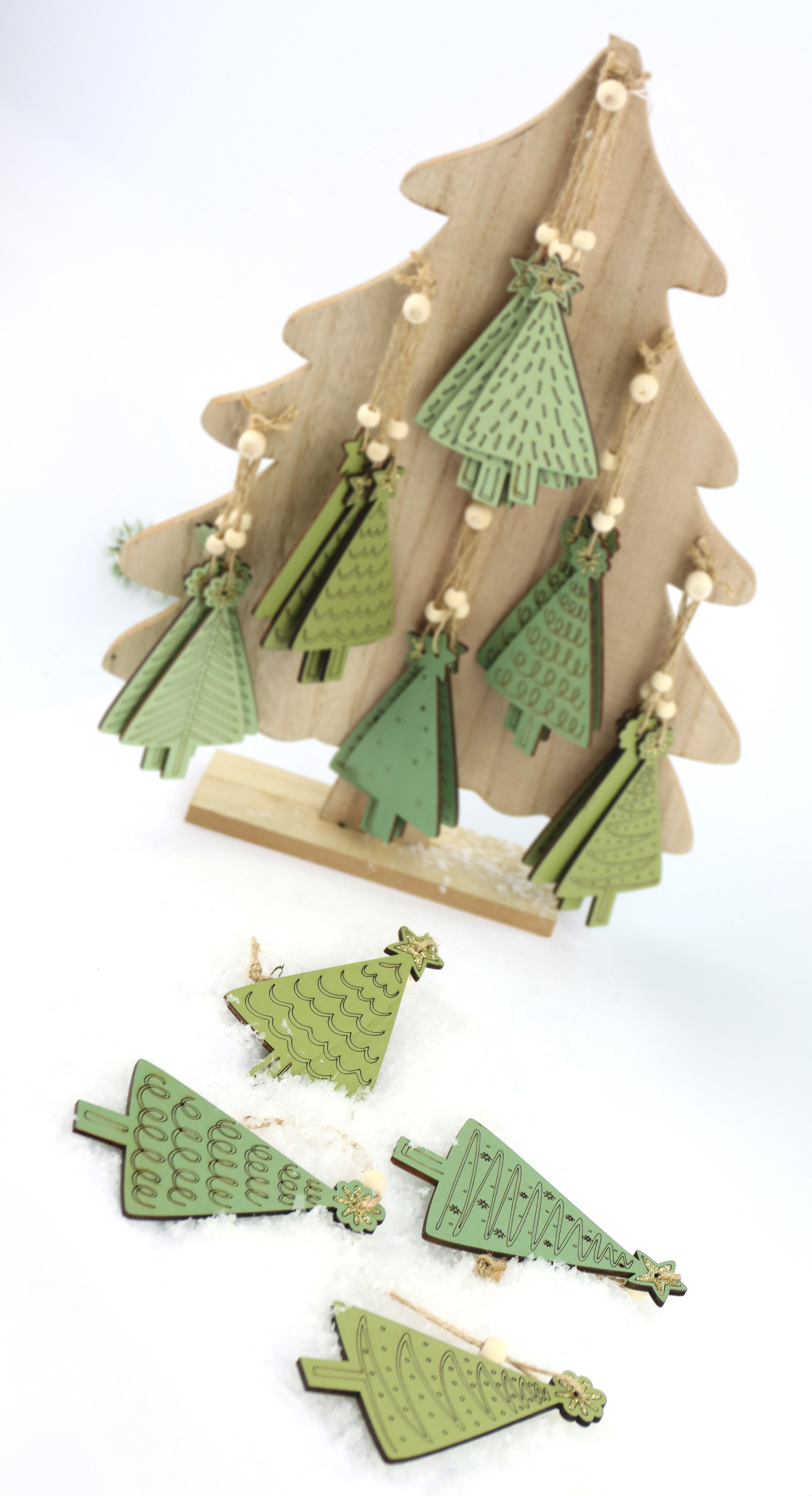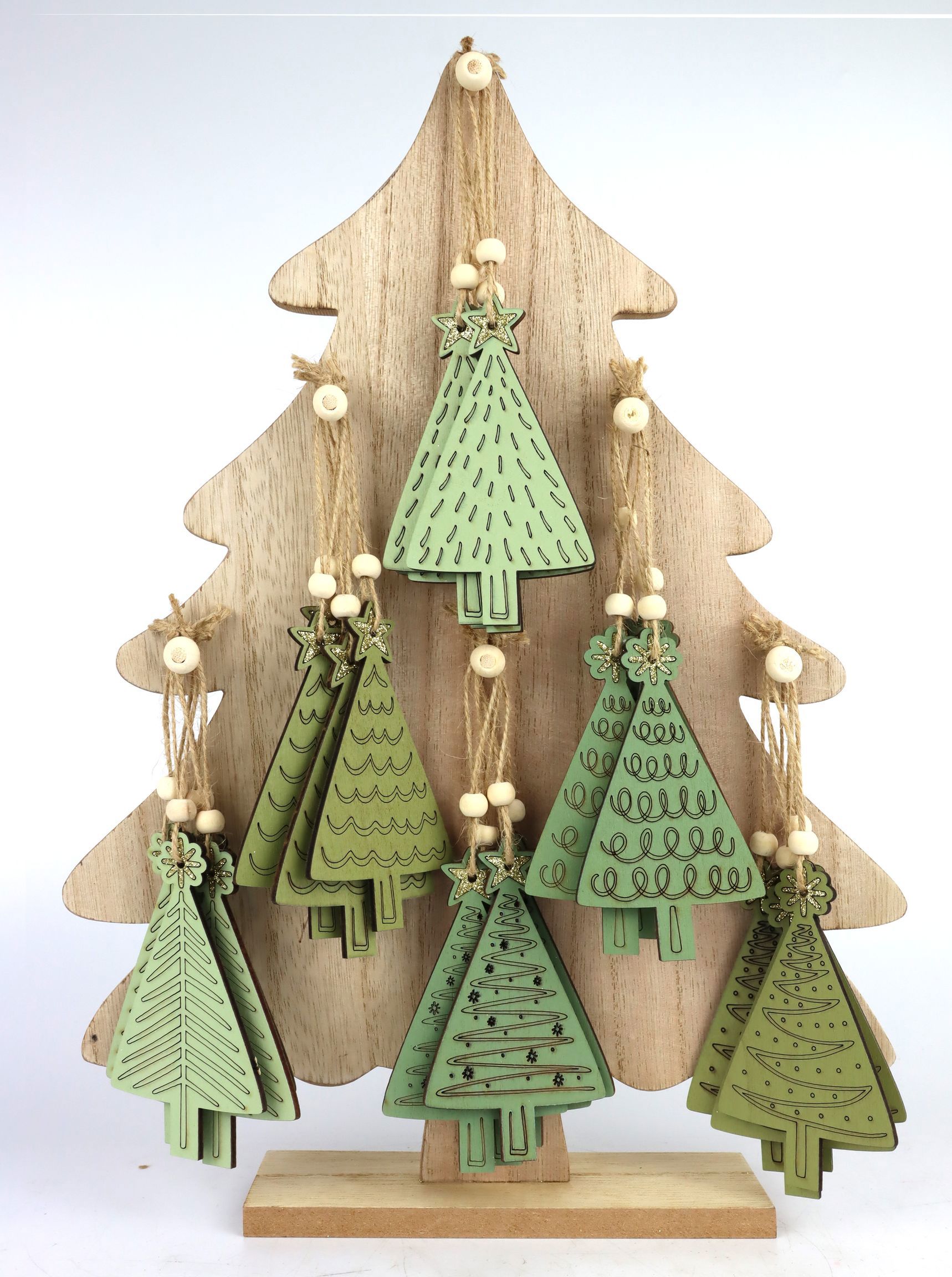 Das Set enthält zudem 25 sorgfältig gestaltete Hänger, die das Motiv von Waldtannen aufgreifen. Diese Dekorationsstücke sind nicht nur ein ästhetischer Genuss, sondern auch ein Leitmotiv für Ihre weihnachtliche Präsentation. Die Hänger sind aus robustem Holz gefertigt und mit viel Liebe zum Detail verziert, um die Festtage gebührend zu feiern und das Ambiente Ihres Stores zu bereichern.