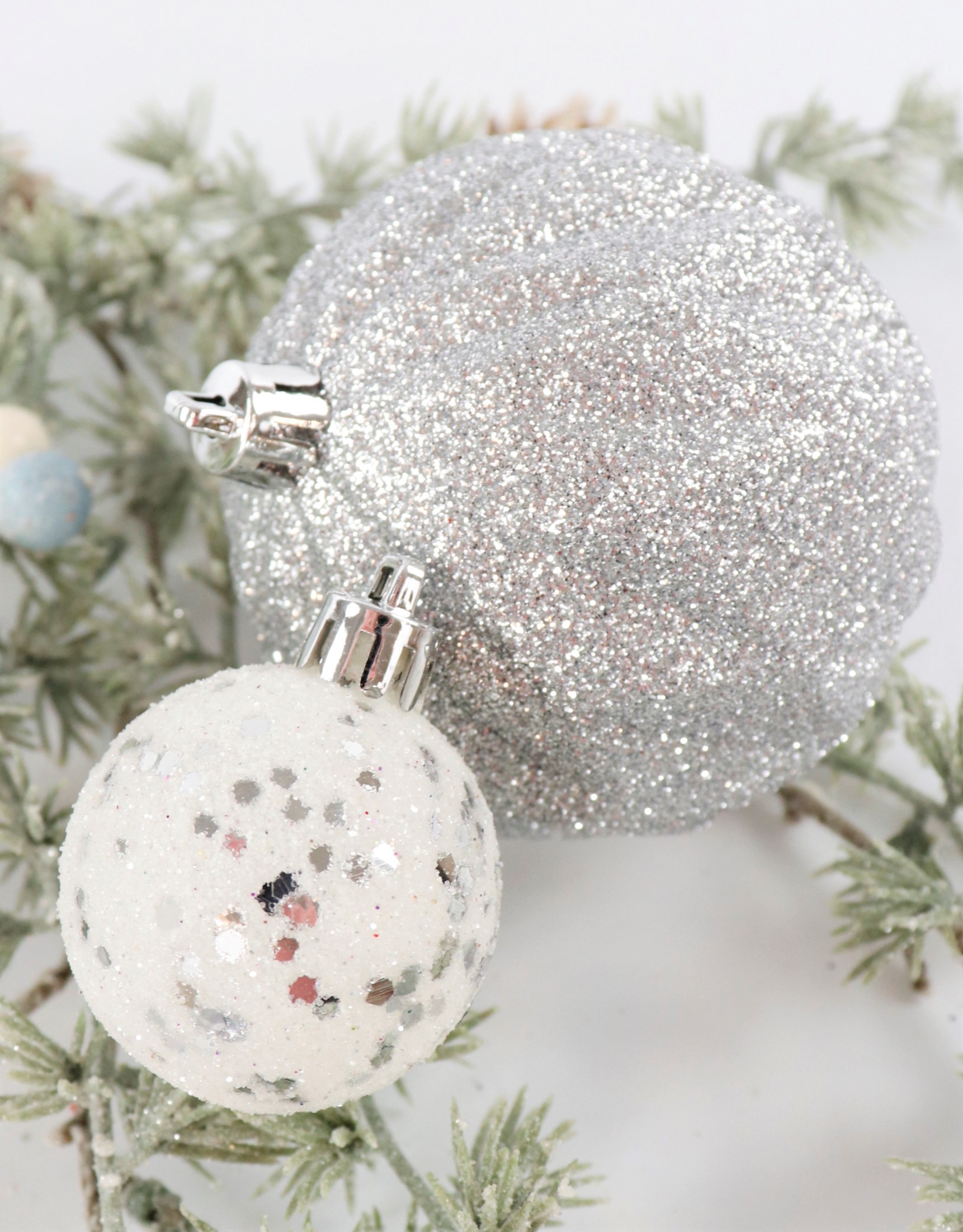 Verleihen Sie Ihrem Einzelhandelsangebot in der festlichen Saison eine besondere Note mit der DISPLAYBOX "MAGIC CHRISTMAS" S/50. Dieses exquisite Set aus 50 hochwertigen Weihnachtsdekorationen ist speziell für den stationären Einzelhandel im Bereich Wohnen und Lifestyle konzipiert und bietet eine perfekte Möglichkeit, Ihre Kunden zu begeistern. Jedes Dekorationselement ist aus langlebigem Kunststoff gefertigt, was sowohl für Robustheit als auch für Ästhetik sorgt. Mit einem Durchmesser von circa 15 cm und einer edlen silbernen Farbgebung vereinen diese Schmuckstücke ein elegantes Design mit einem klassischen Weihnachtsflair.