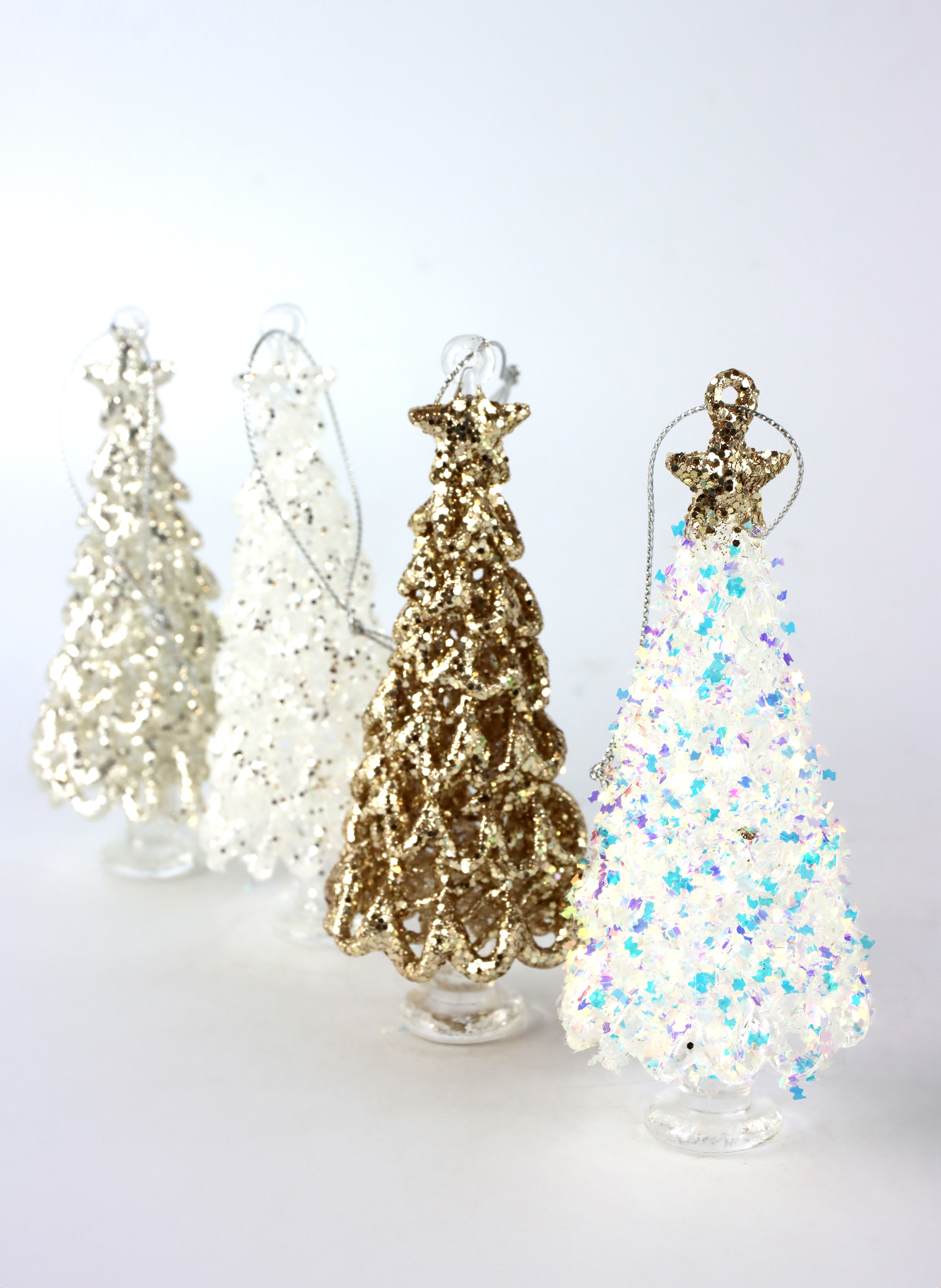 Die glitzernden "Kristallbäume" setzen ein funkelndes Statement auf jedem Weihnachtstisch, Fensterbrett oder wo immer Sie sie platzieren möchten. Ihr Design vereint Eleganz und Festlichkeit auf unvergleichliche Weise. Jeder "Kristallbaum" funkelt im Licht und reflektiert es auf zauberhafte Weise, wodurch eine besondere Atmosphäre geschaffen wird.