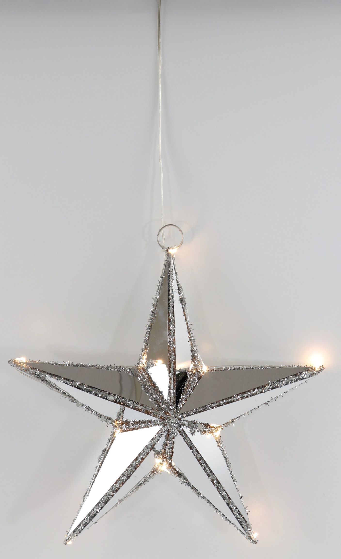 Erleuchten Sie die festliche Jahreszeit mit unserem beeindruckenden LED-Leuchtstern "REFLECTION". Dieser geschmackvolle Leuchtstern, speziell für die Weihnachtszeit entworfen, ist nicht nur eine Lichterquelle, sondern ein echtes Highlight in jeder Dekoration. Dank seiner stilvoll reflektierenden Oberfläche und dem eleganten Silberrand wird der Stern in jedem Raum zum Blickfang.