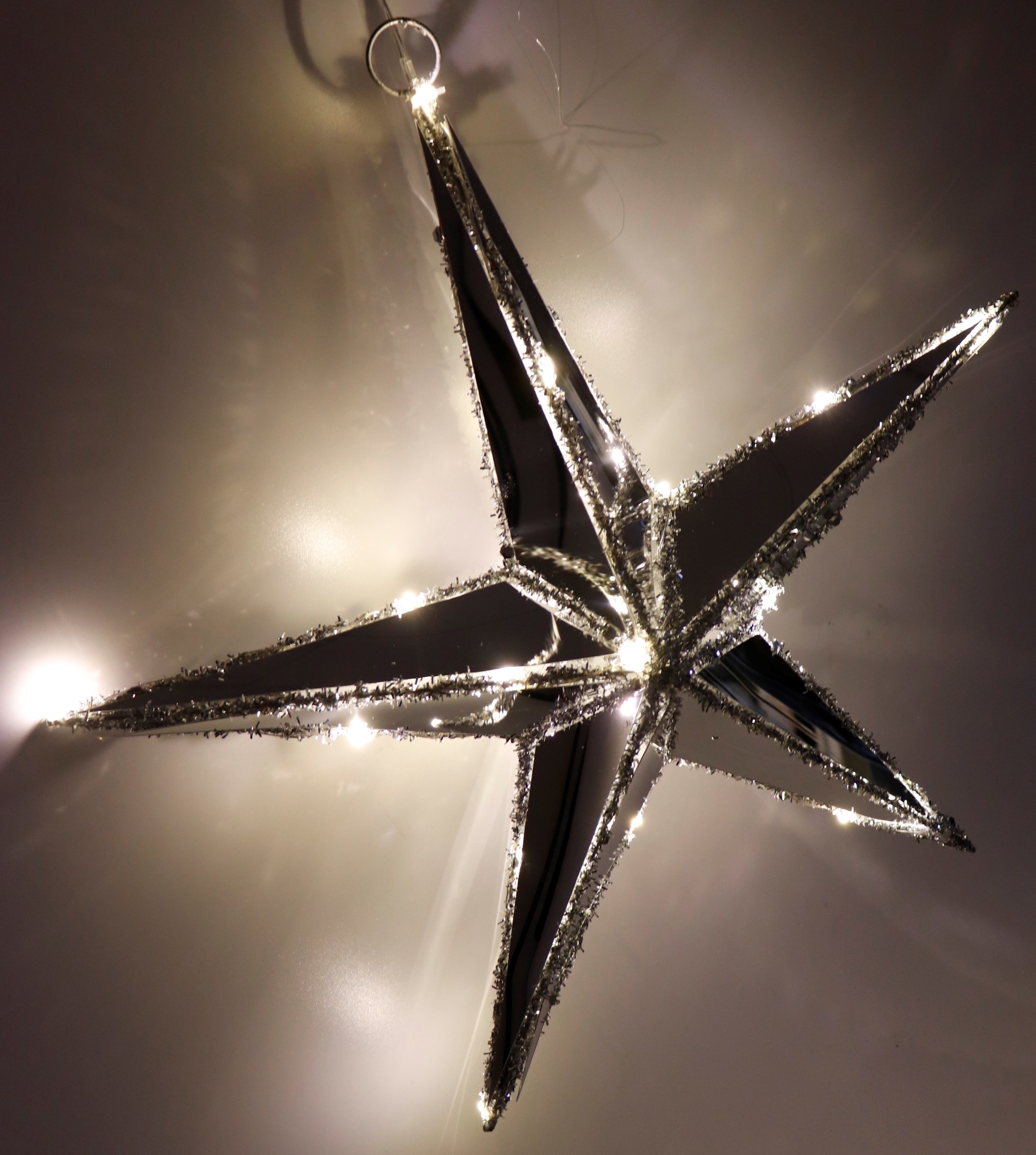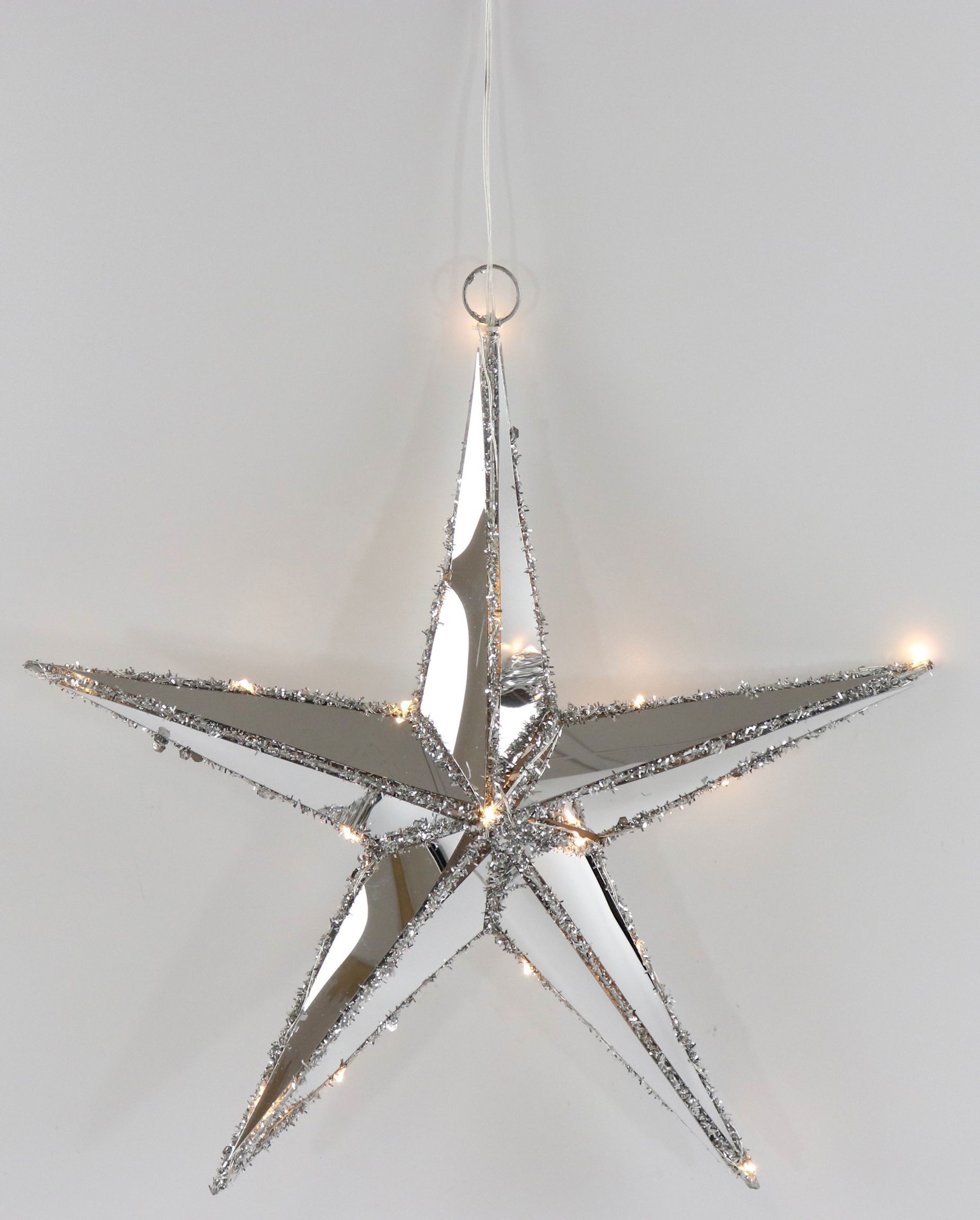 - Hochwertiger LED-Leuchtstern mit spiegelndem Effekt und silbernem Rand
