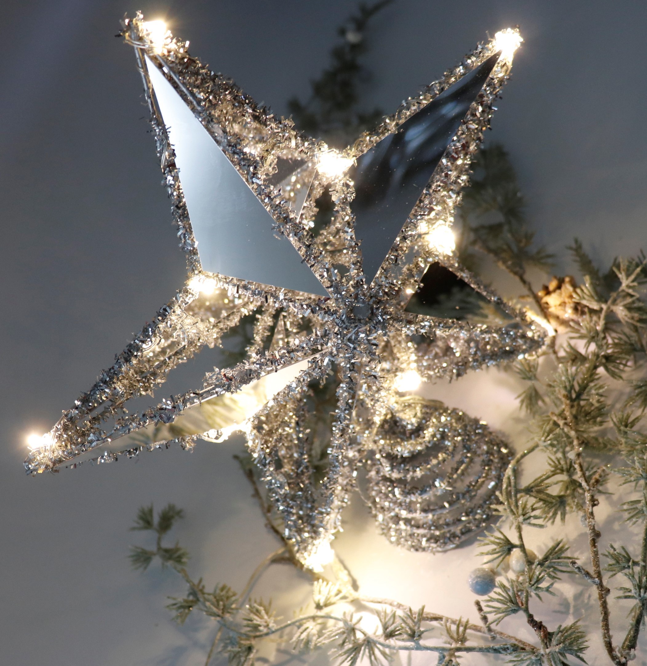 - Elegante LED-Baumspitze mit spiegelndem Silberrand