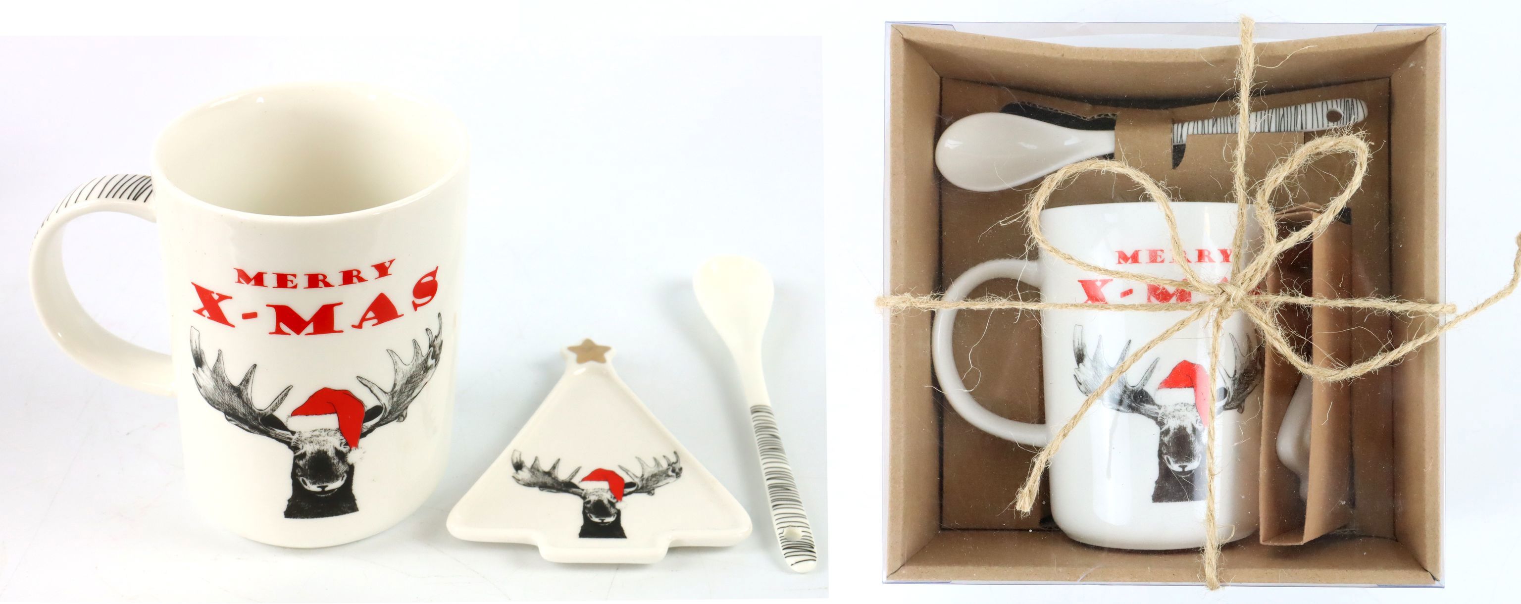 Entdecken Sie unser charmantes Geschenk-Set "Funny Moose" S/3, ein ideales Produkt für den stationären Einzelhandel im Bereich Wohnen und Lifestyle. Dieses dreiteilige Set verkörpert pure Weihnachtsfreude und besteht aus einer Tasse, einem Tannenbaumteller und einem Löffel, alles kunstvoll aus hochwertigem Porzellan gefertigt. Die liebenswerten Weihnachtselch-Motive verleihen diesem Set seinen besonderen Charme, der Ihre Kunden zur Weihnachtszeit begeistern wird.