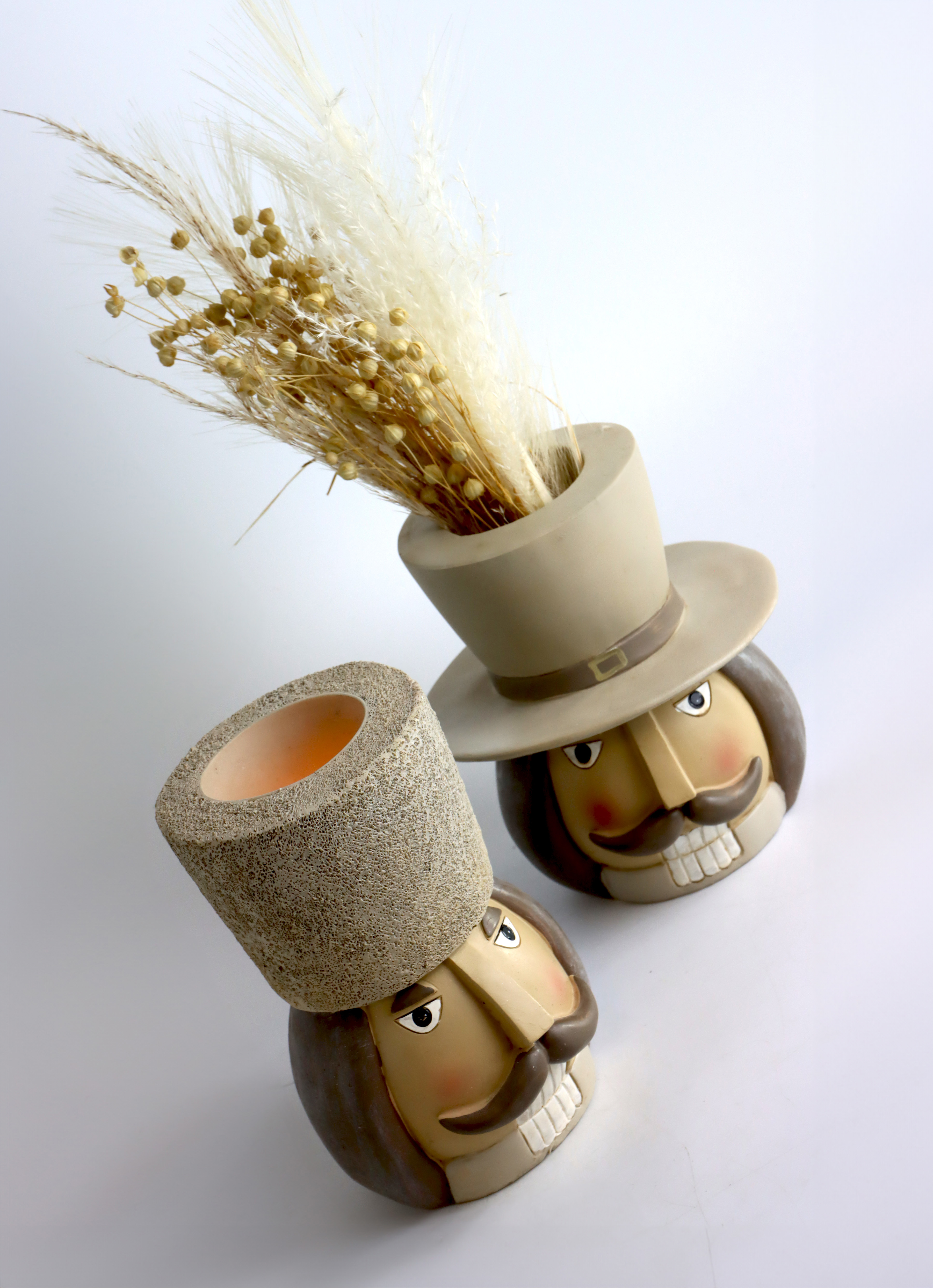 Entdecken Sie unser exklusives Leuchter-Set "NUTCRACKER", das aus zwei stilvollen Nussknackerköpfen gefertigt ist. Dieses besondere Set ist für die Weihnachtszeit genau das Richtige, um Ihren Kunden eine festliche und zugleich elegante Atmosphäre zu bieten. Die Leuchter sind ca. 16,5 cm hoch und bestehen aus hochwertigem Polyresin, das für seine Langlebigkeit und detaillierte Verarbeitung bekannt ist. Diese Leuchter fügen sich nahtlos in jede Wohn- und Lifestyle-Einrichtung ein, sei es im Wohnzimmer, im Eingangsbereich oder als Highlight auf dem Festtagstisch.