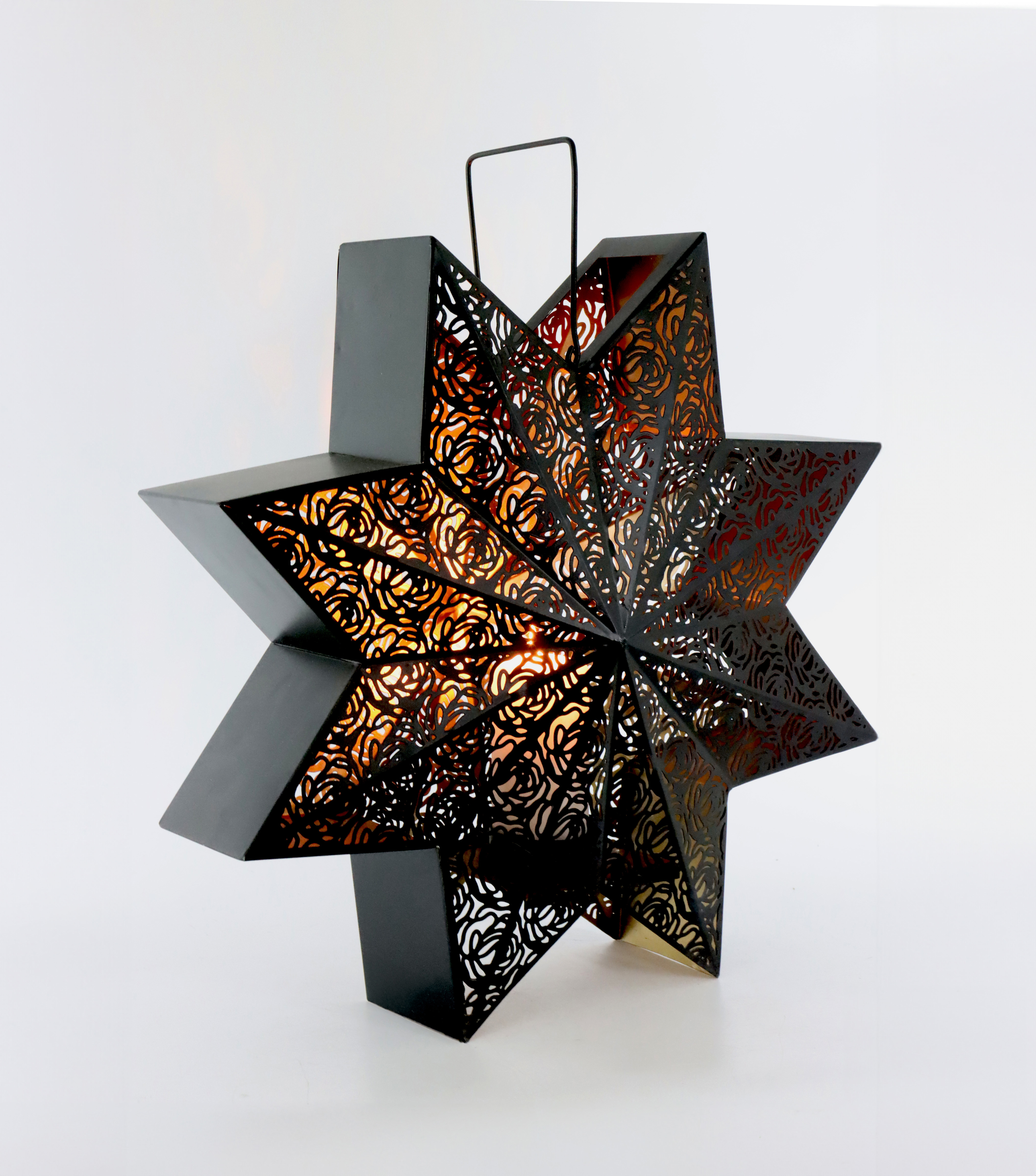 SEO-relevante Keywords: Sternlaterne, Weihnachtsdekoration, Weihnachtsaccessoire, Einzelhandel, Wohnaccessoire, Kerzenträger, Lifestyle-Produkt, Eisen, schwarz, Weihnachten, Weihnachtsfee.
