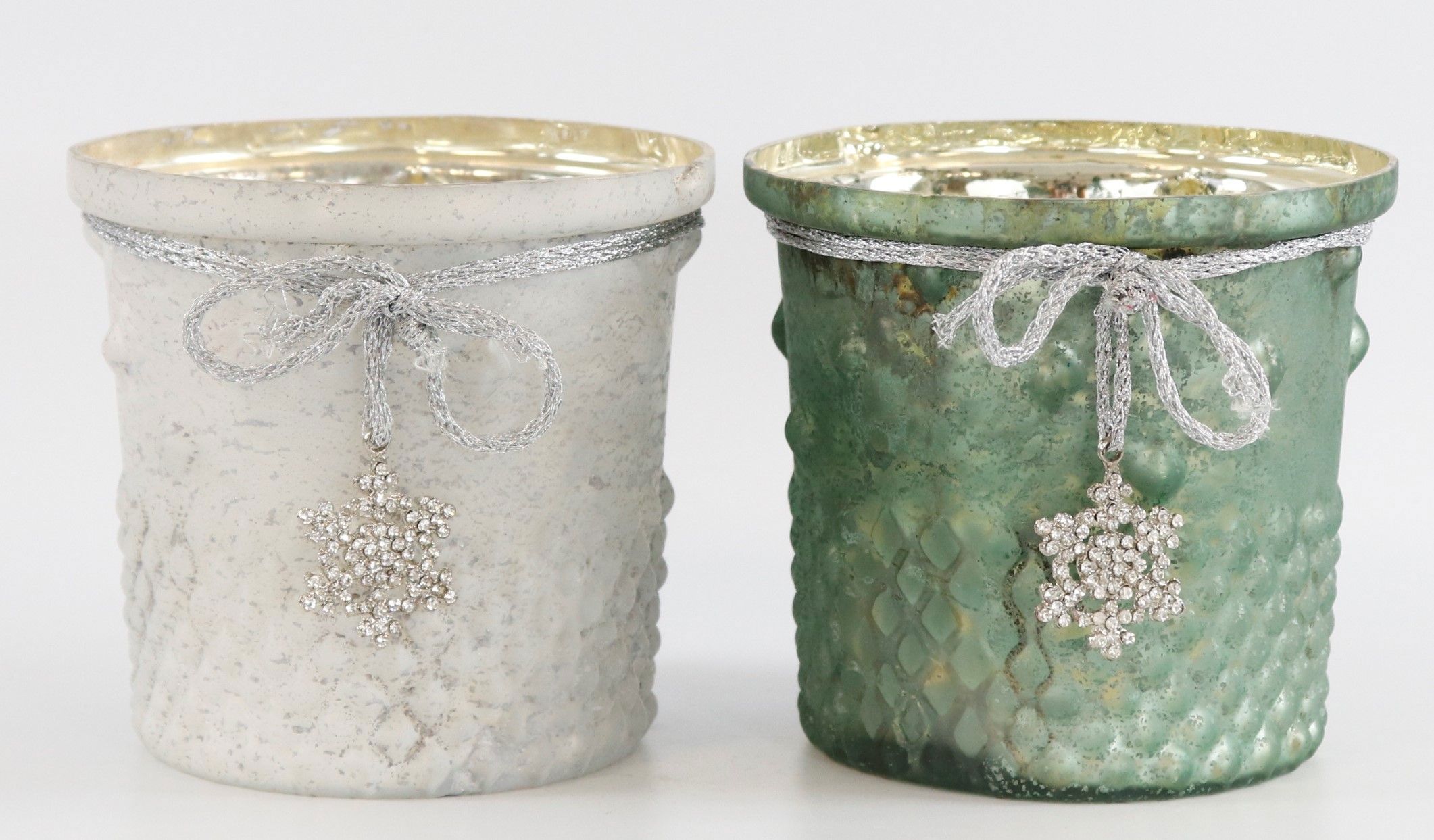 Erleben Sie die zauberhafte Atmosphäre der Weihnachtszeit mit unserem exklusiven 2-teiligen Set Windlichter „Frozen“. Diese eleganten Windlichter aus Metall und Glas sind die ideale Dekoration für jeden stationären Einzelhandel im Bereich Wohnen und Lifestyle. Mit einem Hauch von Frost präsentieren sie sich in stilvollem Weiß und Grün und zaubern festlichen Glanz in jedes Zuhause oder Geschäft.
