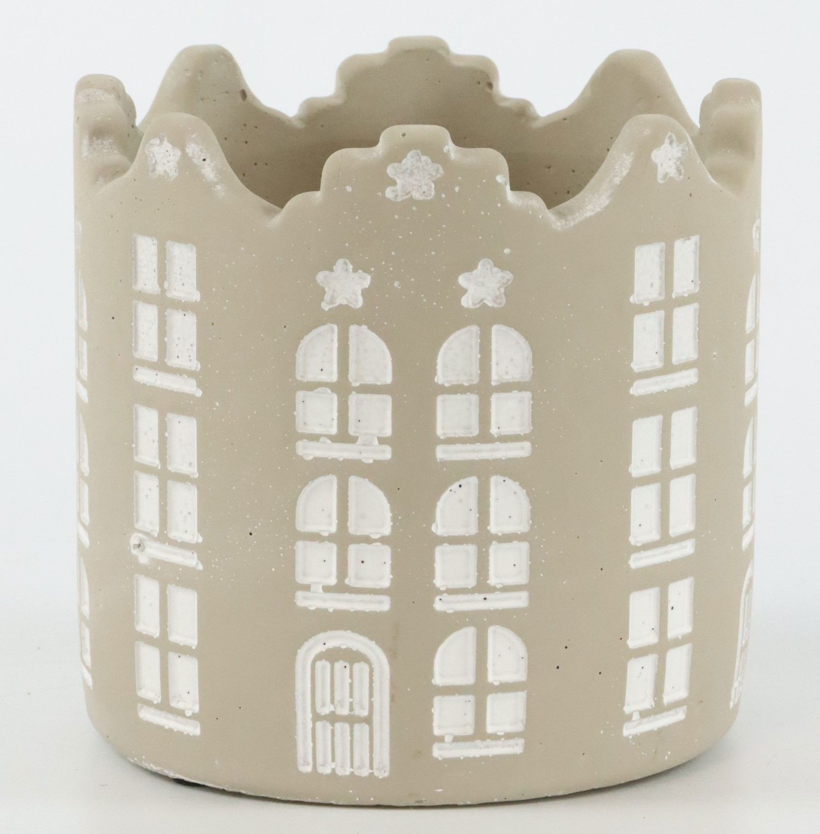 Hergestellt aus hochwertigem Zement, bietet der ÜBERTOPF "TOWNSHIP" nicht nur eine robuste und langlebige Struktur, sondern auch eine attraktive, natürliche Optik. Das Design mit dem Stadtmotiv verleiht ihm ein modernes und zugleich gemütliches Aussehen, das perfekt in die weihnachtliche Dekoration passt. Sei es als Eyecatcher in den Auslagen oder als Dekorationselement im Geschäftsraum – dieser Übertopf zieht Blicke auf sich und inspiriert Weihnachtsgefühle.