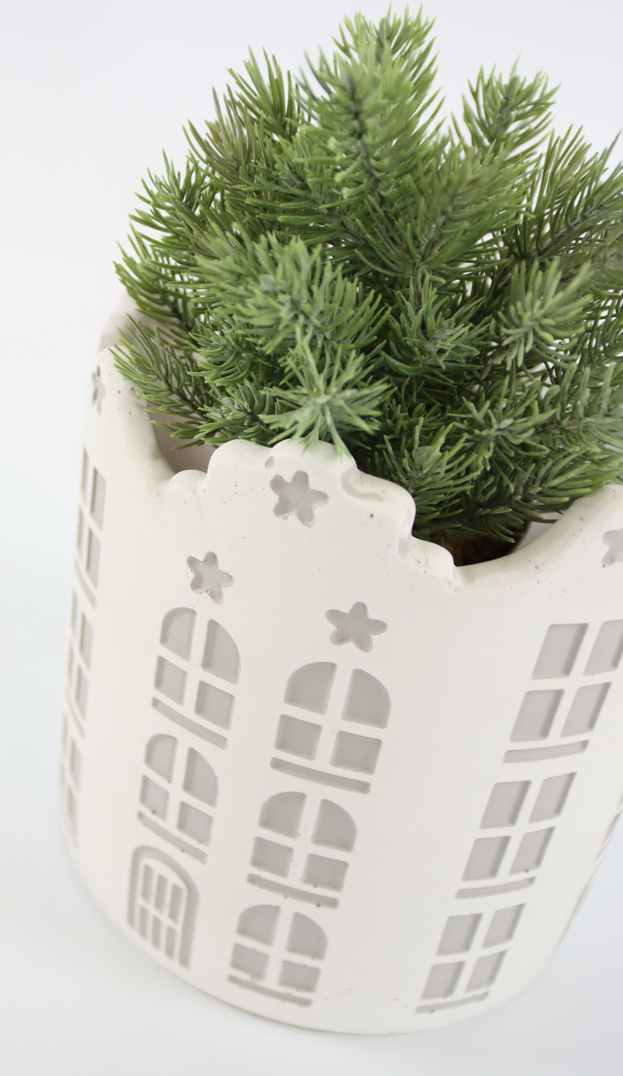DEErleben Sie die Festtage mit dem charmanten ÜBERTOPF "TOWNSHIP", der eine zauberhafte Ergänzung für jedes Wohnambiente darstellt. Unser exklusiver Übertopf ist speziell für die Weihnachtszeit entworfen und vereint modernes Design mit einer Prise traditioneller Festlichkeit. Gefertigt aus robustem Zement, beeindruckt er mit seiner Langlebigkeit und natürlichen Ästhetik, die perfekt zu einem zeitgemäßen Lifestyle passt.