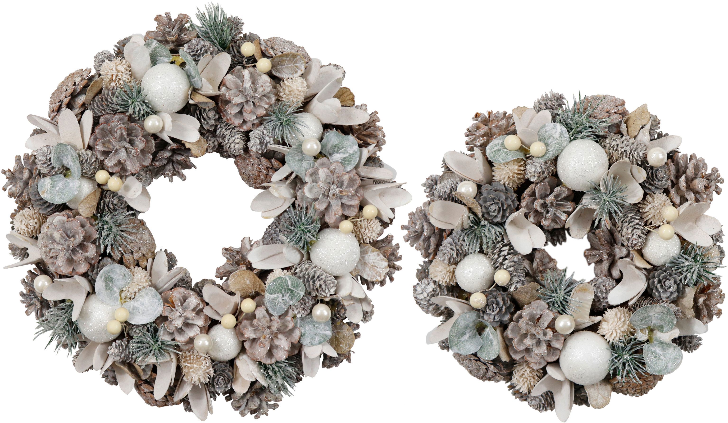 Suchmaschinenoptimierte Keywords: Deko-Kränze, Wohnen und Lifestyle, hochwertige Dekoration, Herbst/Winter Deko, stationärer Einzelhandel, Kranz Set "Silvretta", Artikelnummer 4584, Geäst Kränze.