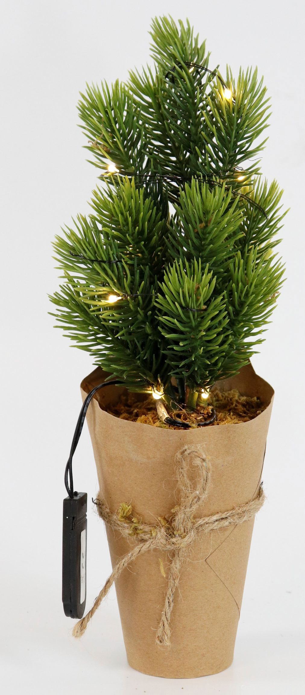Dieses 27 cm hohe LED-Bäumchen Named "Frozen" setzt sich in Szene und ist stets ein beeindruckender Blickfang während der Festtage. Eingebettet in einem Papiertopf aus robustem Kunststoff, Papier und Jute, bleibt das Bäumchen stabil und ist leicht zu handhaben.