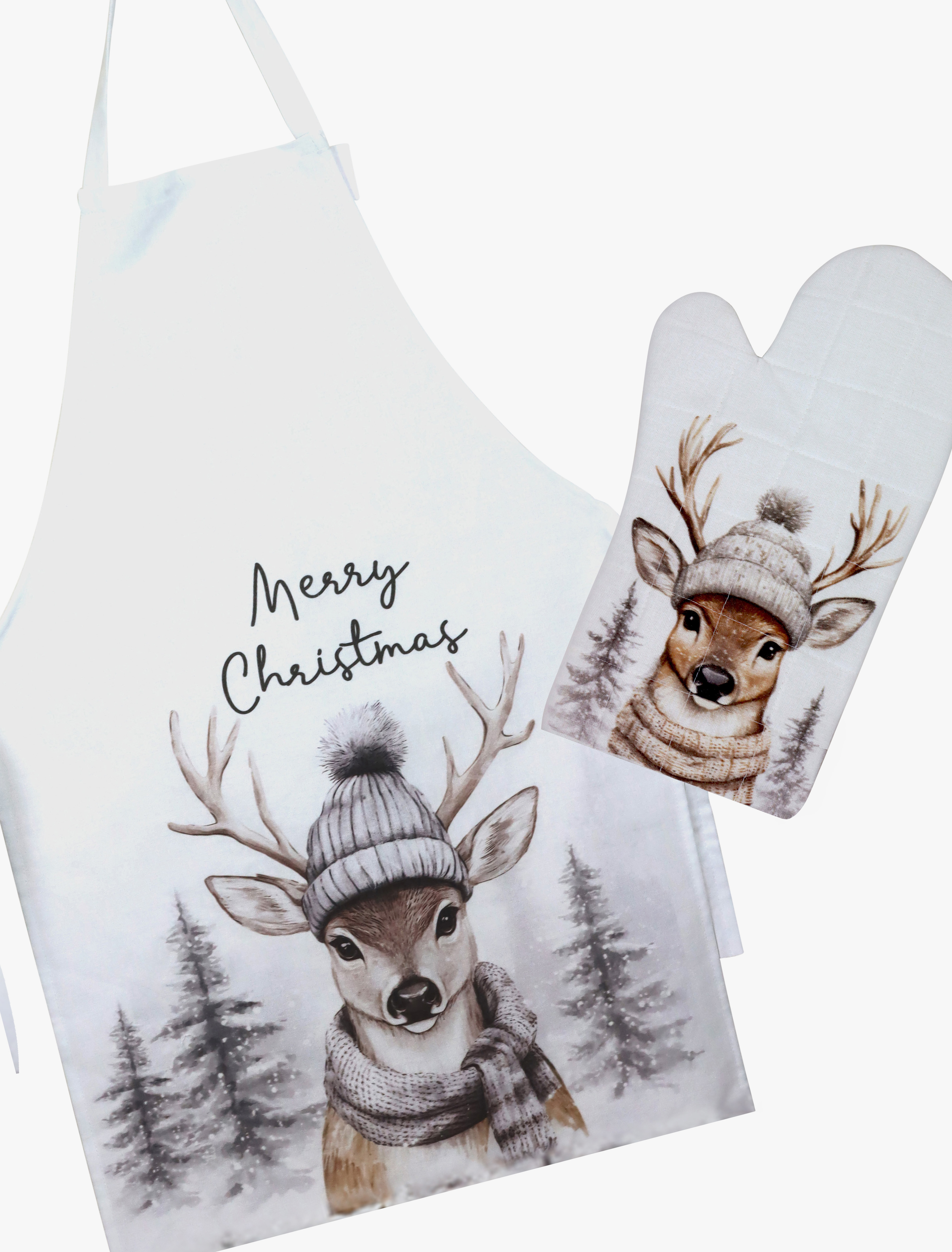 **Produktbeschreibung: SCHÜRZE & TOPFHALTER "HIRSCH" S/2 - Perfekt für die Weihnachtszeit**