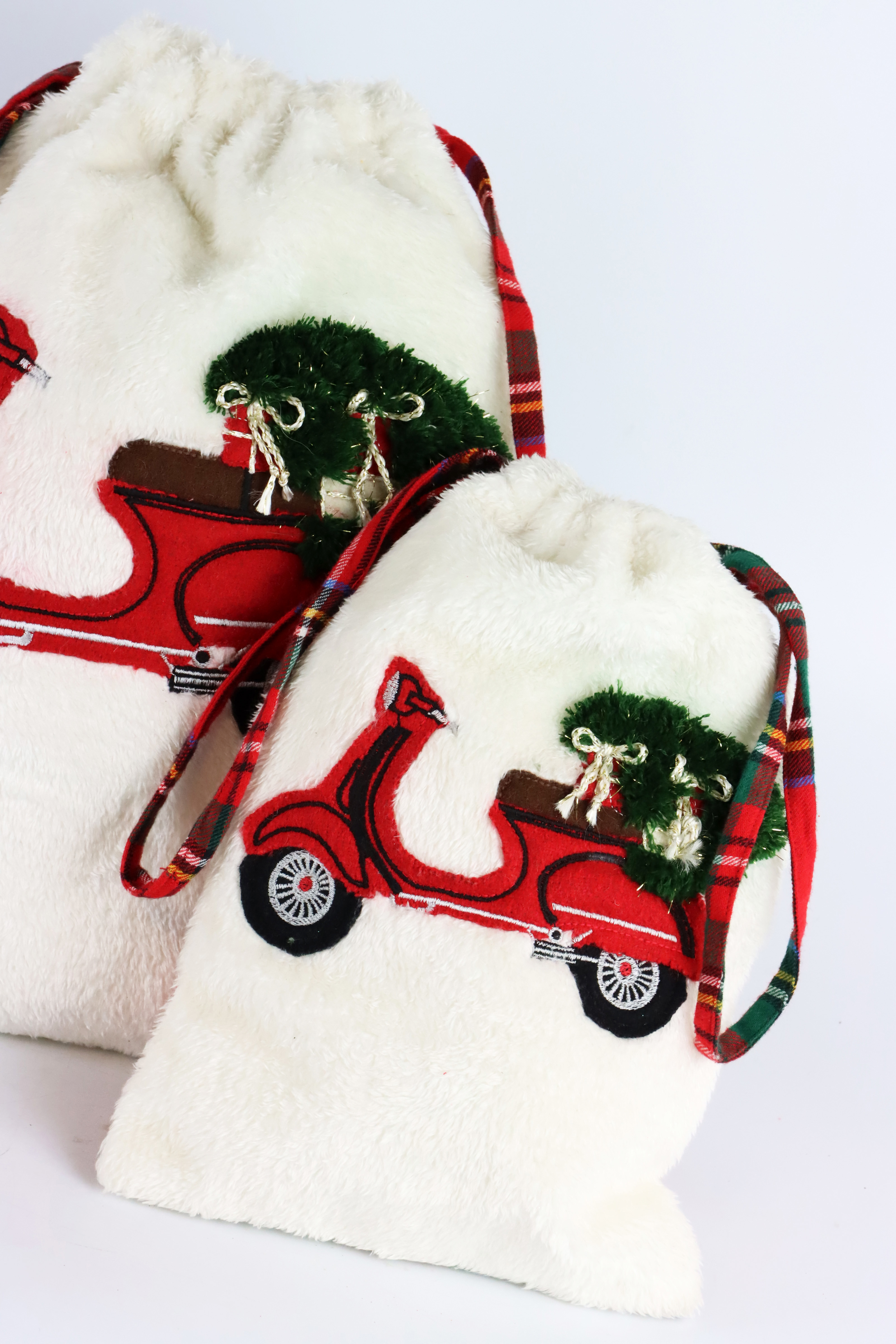 Das Farbschema der Säcke - in den weihnachtlichen Farben weiß und rotkariert - lässt nicht nur die Augen von Kindern leuchten. Ebenfalls ein hervorstechendes Merkmal der Weihnachtssäcke "Xmas Scooter" ist ihre Einzigartigkeit. Sie sind als dekorative Elemente zum Hängen konzipiert, die jedem Raum eine festliche und warme Atmosphäre verleihen.