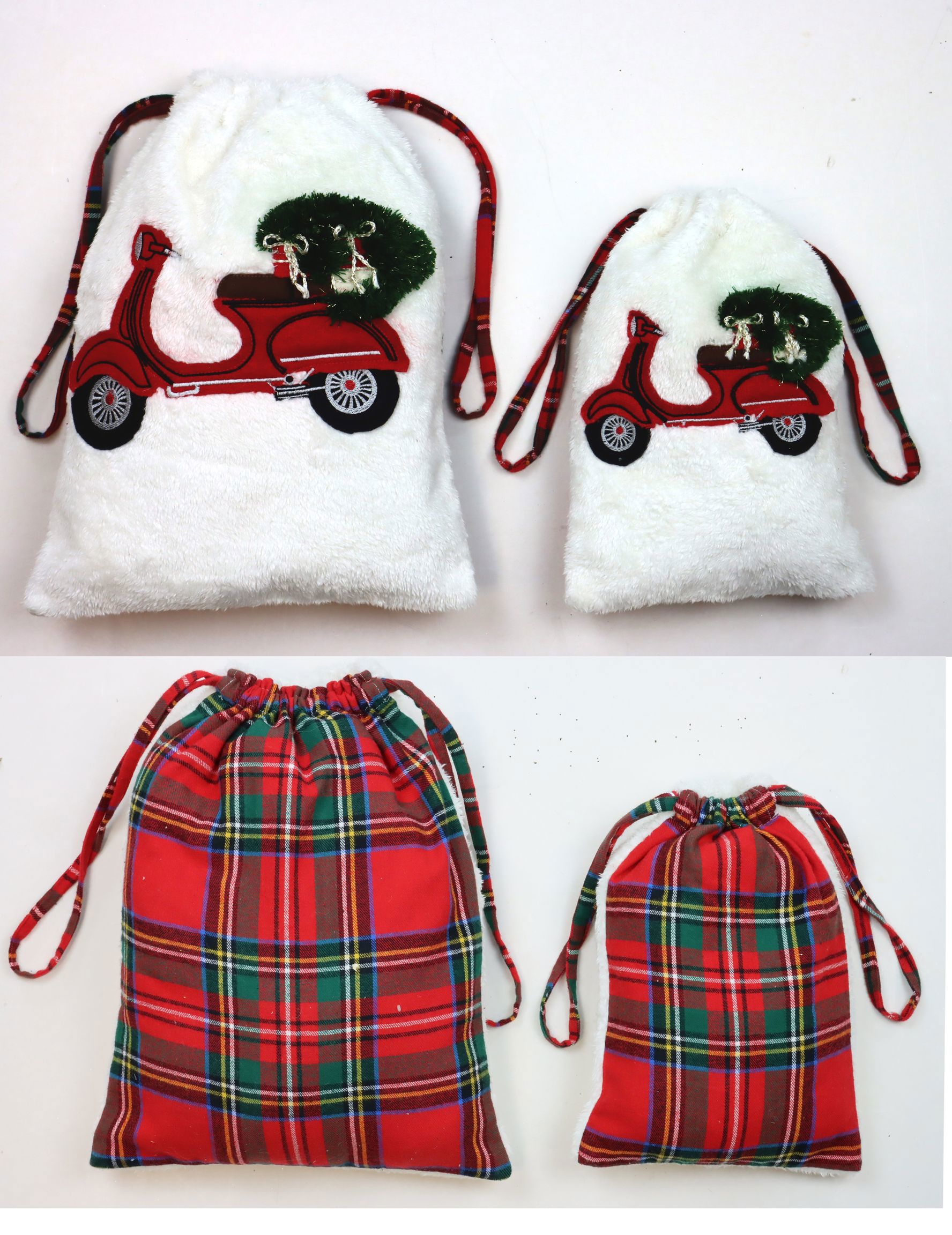 Unsere stilvollen Weihnachtssäcke "Xmas Scooter" (Artikelnummer 5242) aus Baumwolle und Polyester sind speziell für den stationären Einzelhandel im Bereich Wohnen und Lifestyle entworfen. Mit ihren Maßen von 30x40 cm und 30x20 cm bieten sie ausreichend Platz für liebevolle Geschenke und Überraschungen.