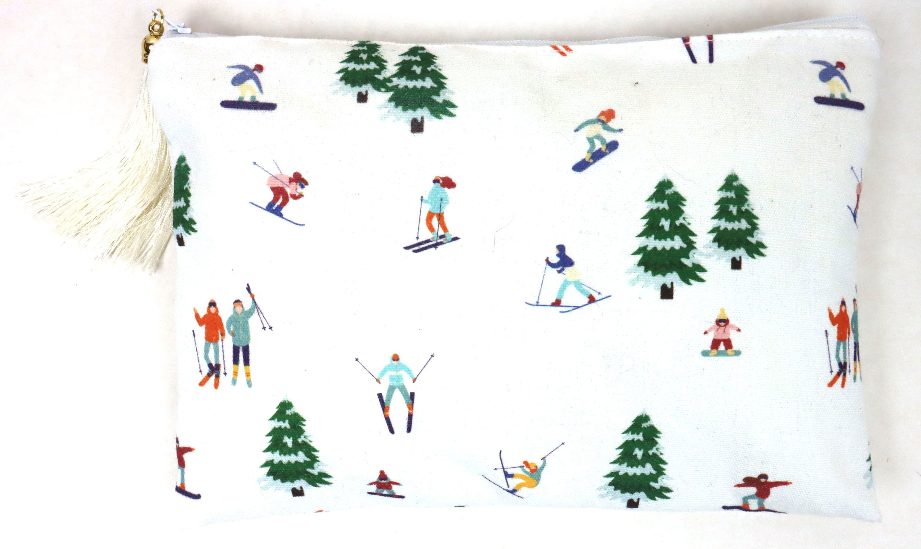 Das Design zeigt einen eleganten Skifahrer, der in verschneiten Landschaften seine Bahnen zieht – ein wahrer Hingucker für jedes Outfit und ein absolutes Must-Have für alle Lifestyle-Liebhaber des stationären Einzelhandels. Ob als praktische Aufbewahrung für Ihre persönlichen Kleinigkeiten oder als stilvolles Statement-Piece, das Täschchen "SNOWY ESCAPADES" erfüllt jede Funktion mit Bravour.