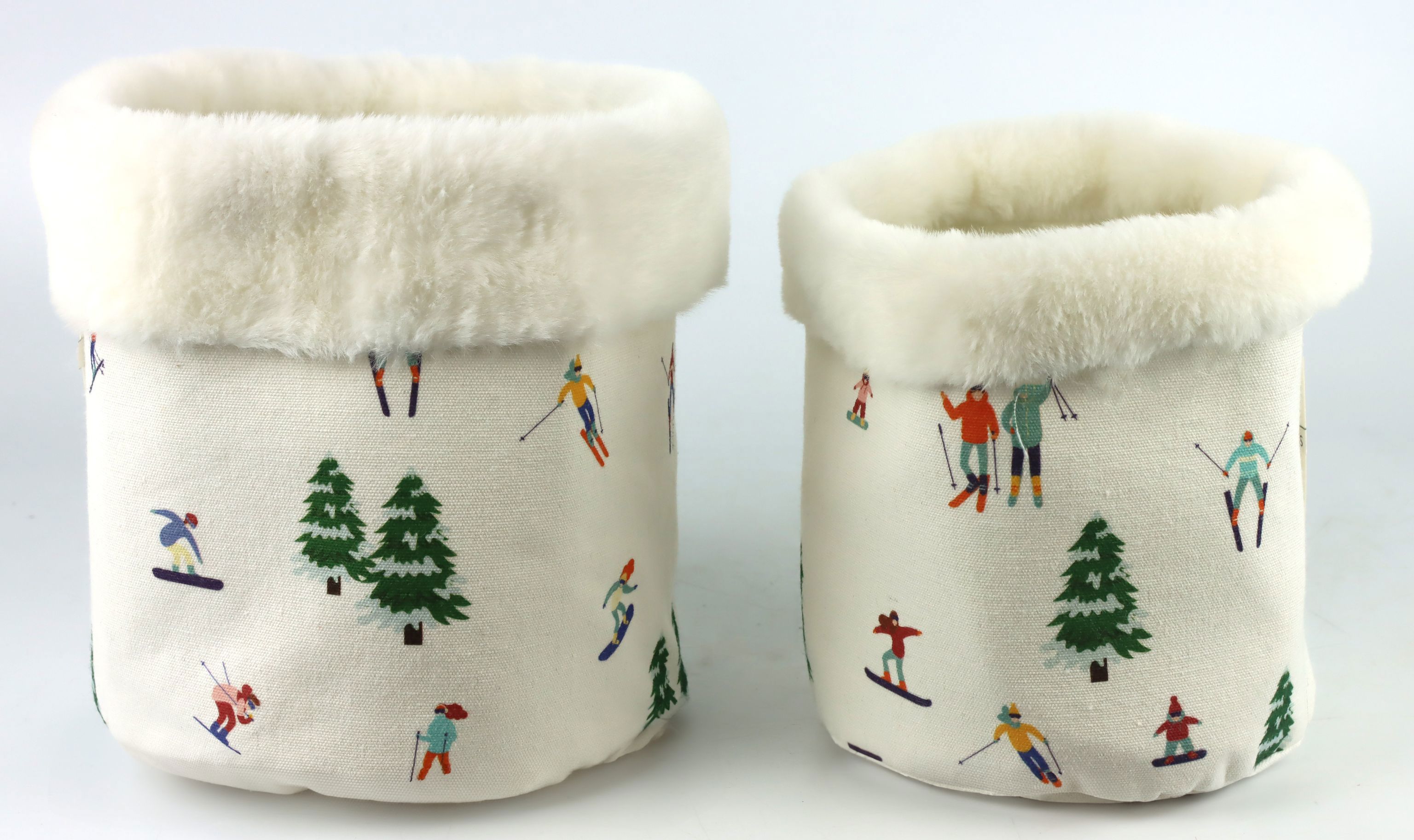 - Set aus zwei dekorativen Stoffkörben mit Skifahrer-Motiv